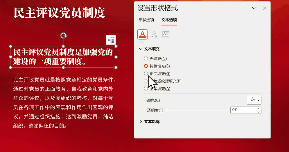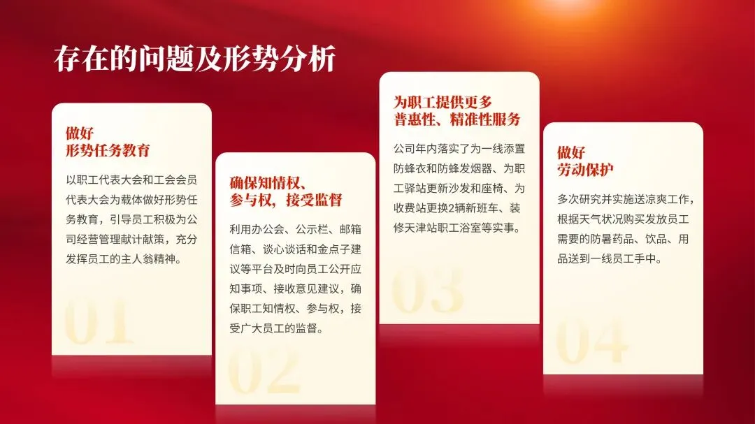 字体也不用纠结,就用不出错的宋体或者黑体,看得清楚还高级:颜色方面,如果是正式的公开汇报,选择背景图或者颜色的时候,优先用中国红和大地黄的配色:如果是日常的工作汇报,优先使用蓝色系的配色,简约严肃不容易翻车:这样借助母版的批量排版功能,就能快速搞定页面修饰:对于普通科员来说,这制作速度是真的快呀! 背景,颜色,字体瞬间搞定,只需要放文字就好了。如果是体制内的领导,可不能只要快!汇报PPT排版还要高级,所以视觉上一定要亮,才有气场!最简单的方法,就是搜索一张金箔图片,然后把文字设置为图片填充: