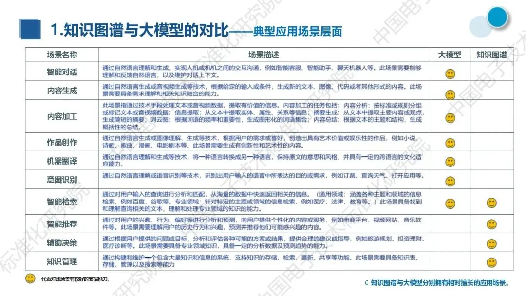 知识图谱与大模型分别拥有相对擅长的应用场景。知识图谱在智能检索、智能推荐、辅助决策和知识管理等方面表现出色,能够基于明确的语义结构进行查询和分析,具有较好的可解释性和可溯源性。而大模型则在智能对话、内容生成、作品创作和机器翻译等方面具有优势,能够生成各种形式和风格的文本,甚至多模态内容。