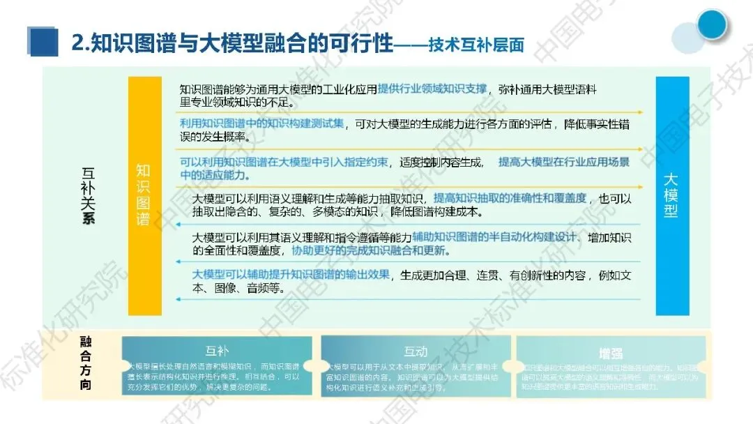 知识图谱的不足在于通用性较弱,缺乏自主学习和创作能力,常识能力有限。而大模型虽然具有通用性和生成性,但存在决策过程黑箱化、输出结果可能错误或有偏见、知识更新滞后等问题。两者在技术特性上的互补性为融合提供了可能。