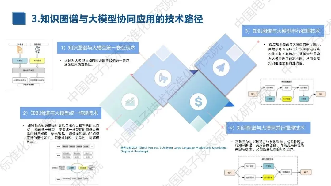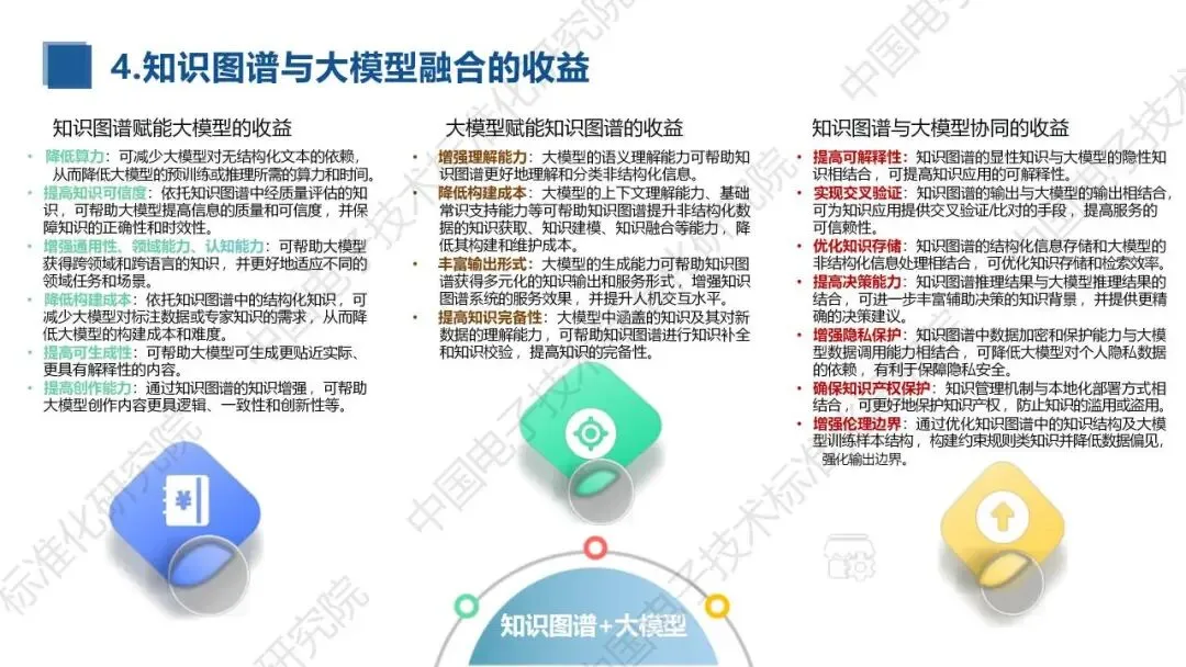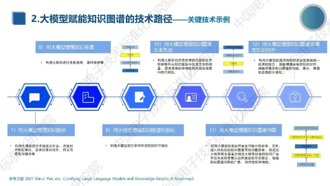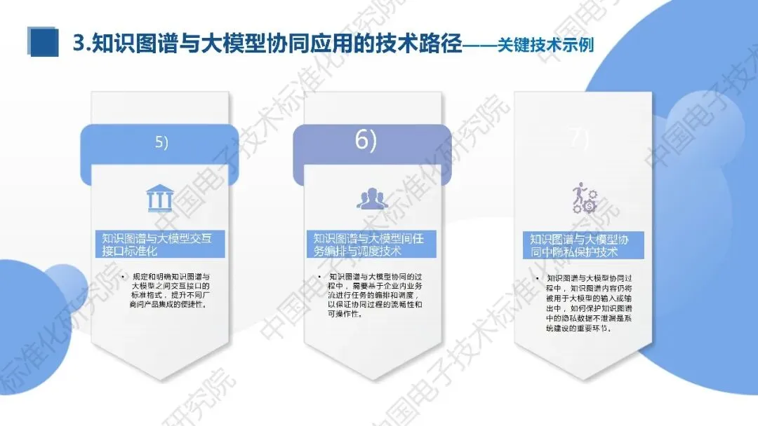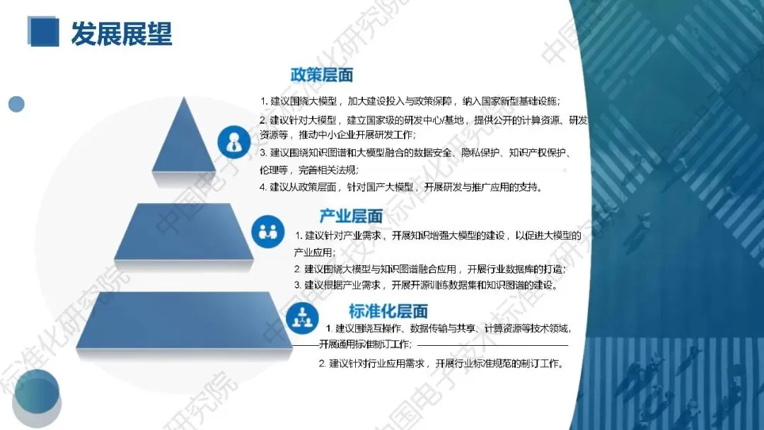 围绕互操作、数据传输与共享、计算资源等技术领域,开展通用标准制订工作,推动知识图谱与大模型融合的标准化进程。针对行业应用需求,开展行业标准规范的制订工作,促进融合系统在不同行业中的广泛应用。同时,加大建设投入与政策保障,推动知识图谱与大模型融合技术的创新和产业深化应用。