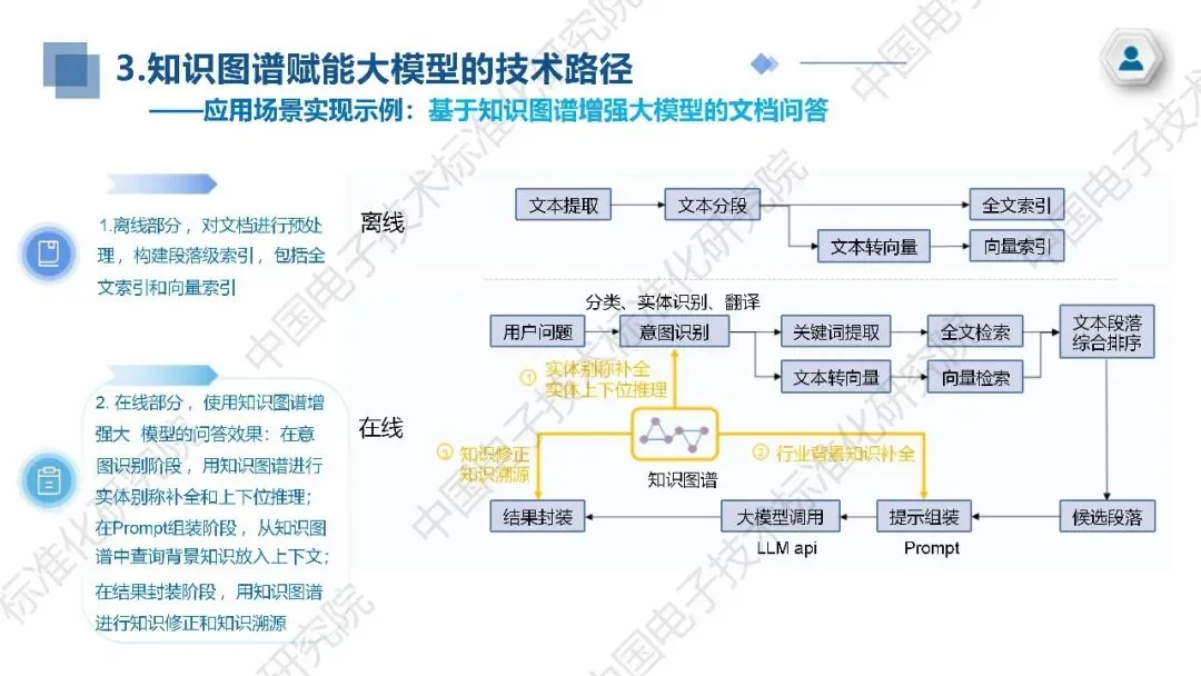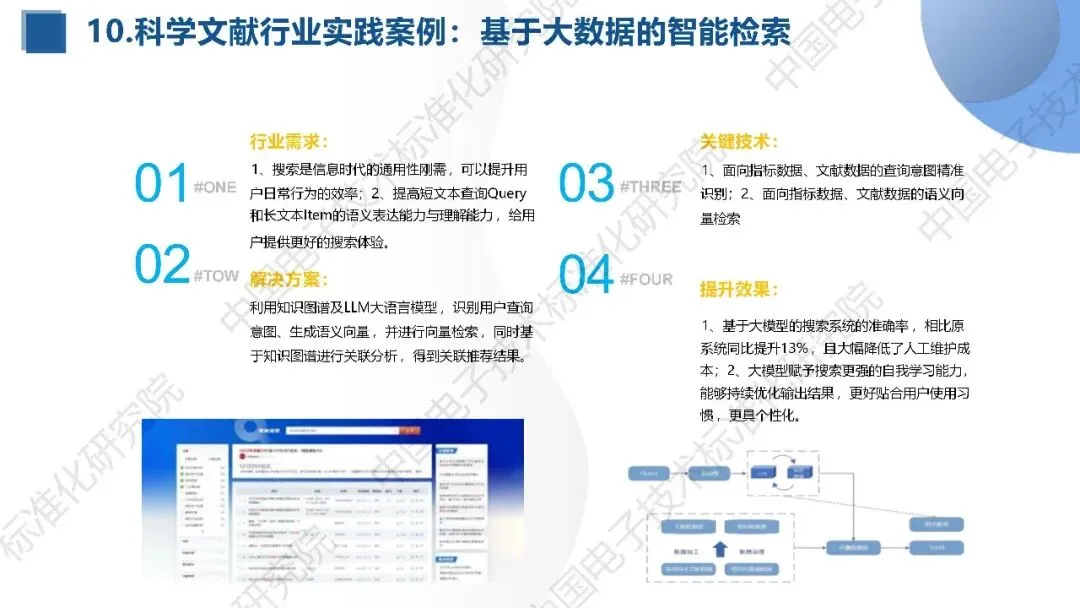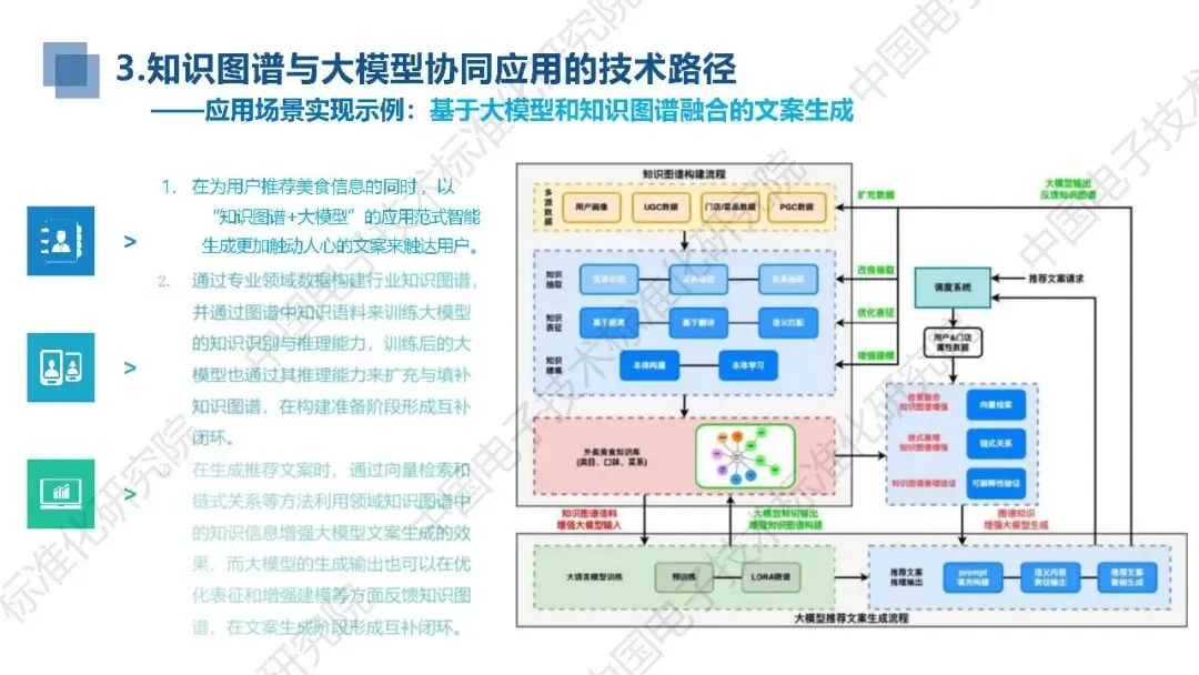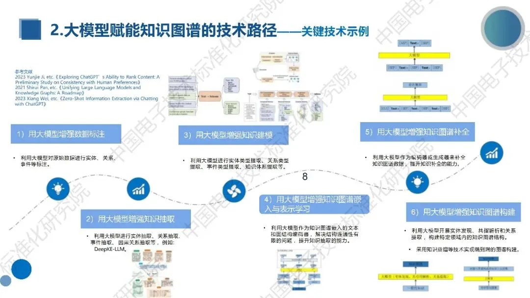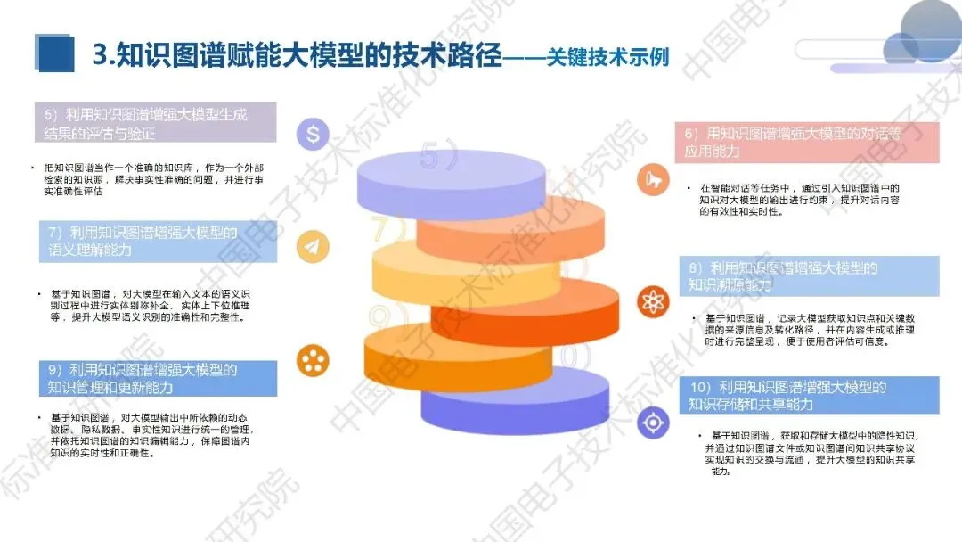 围绕互操作、数据传输与共享、计算资源等技术领域,开展通用标准制订工作,推动知识图谱与大模型融合的标准化进程。针对行业应用需求,开展行业标准规范的制订工作,促进融合系统在不同行业中的广泛应用。同时,加大建设投入与政策保障,推动知识图谱与大模型融合技术的创新和产业深化应用。