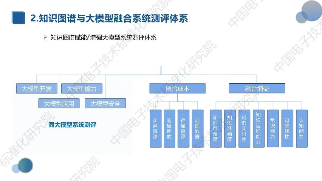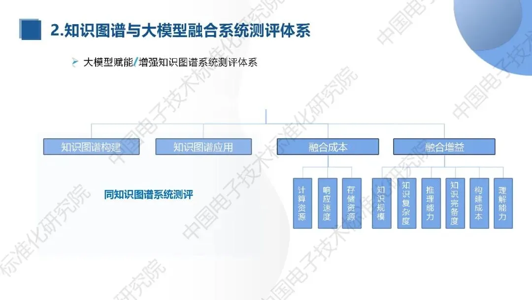 融合系统的评测需要综合考虑知识图谱和大模型的特点,评估两者在知识表示、知识推理和内容生成等方面的协同效果。评测指标包括知识完备度、构建成本、理解能力、存储资源、融合成本和响应速度等。通过实际融合系统与大模型的性能测试结果对比,可以验证融合系统的优势和收益。