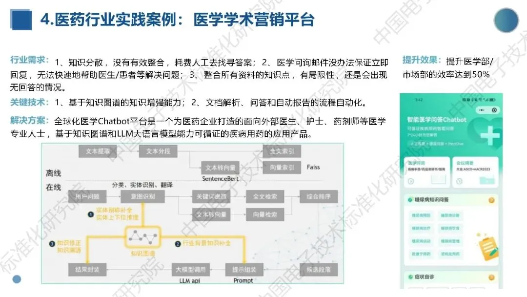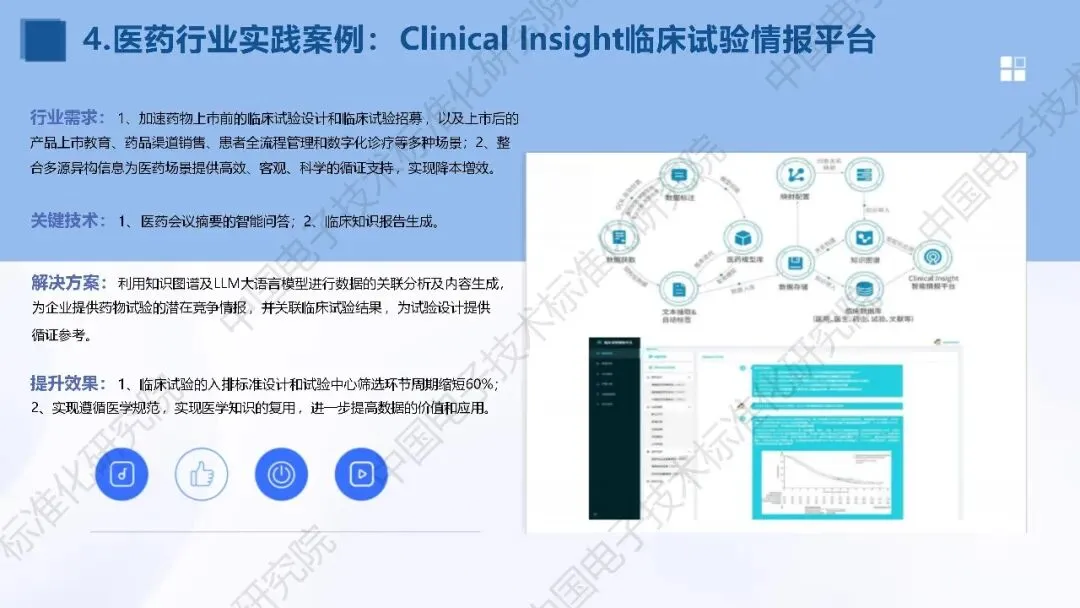 在医药行业,利用知识图谱和大语言模型构建的临床试验情报平台,能够加速药物上市前的临床试验设计和招募工作。通过数据的关联分析和内容生成,平台能够为企业提供药物试验的潜在竞争情报和循证参考,缩短临床试验周期,提高数据价值和应用效果。