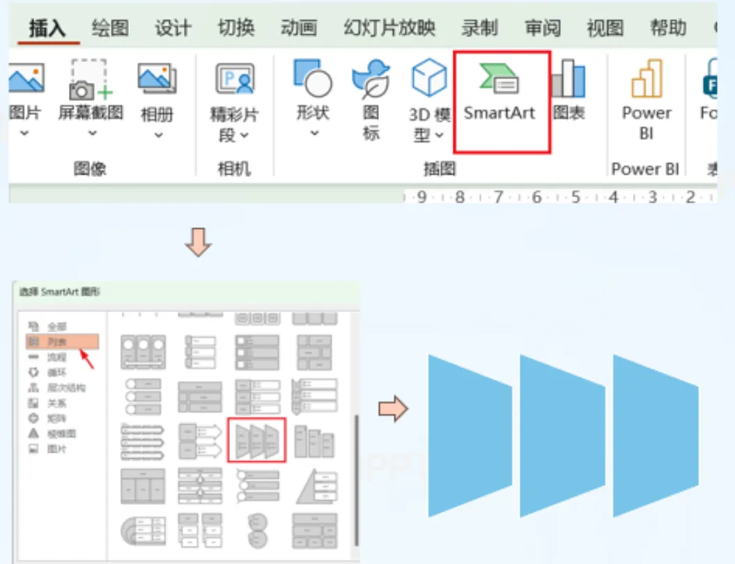 前几天我看到有个文章里教如何使用【SmartArt】快速实现多图片排版,我就打开wps里的演示文稿(我们习惯称作“ppt”)跟着操作。当我插入一个梯形列表后,跟着教程操作:点击后按住Ctrl+shift+G取消组合得到3个梯形。试了好几次Ctrl+shift+G取消组合,依旧是纹丝不动。今天我自己发现了一个功能,可以将【SmartArt】中的组合形状进行拆分,也就是取消组合。2、选中梯形列表,依次点击右上角的【转换】-【转换为形状】。后边的就是常规操作:复制梯形,调整方向,插入图片、文字,做一些适当修饰......是我误解了wps,我想当然的以为wps没有office办公软件功能全面,其实是因为我对wps演示功能不熟悉造成了这次的误解,我是无知的:遇到问题先否定工具,没有反思自身方法与熟悉度,不去主动探索验证,依旧持有刻板印象去做判断。