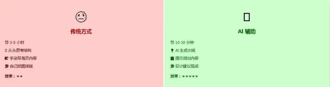 我用同样的 PPT 工具,只是让 AI 先帮我梳理内容和结构,**效率提升 10 倍不止。**