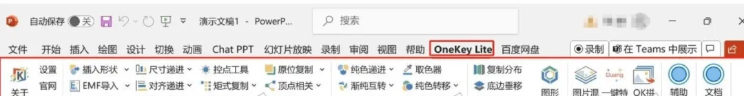 开始操作前,请确保已安装Onekey插件,该工具提供了便捷的图像混合功能,是实现快速上色的关键。安装完成后,您将在PPT工具栏中看到Onekey选项卡。以下将以图a1为例,演示完整的着色流程。