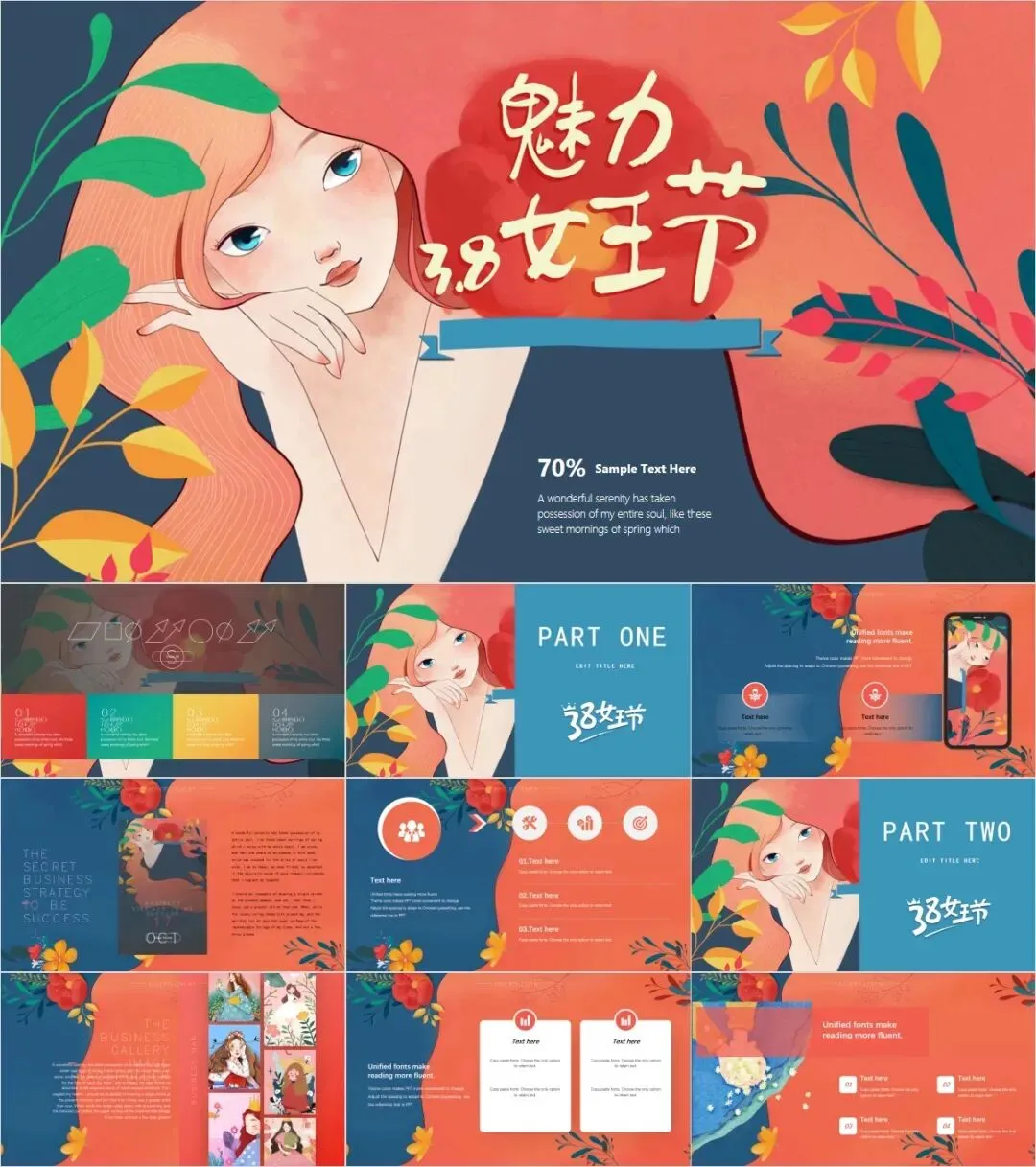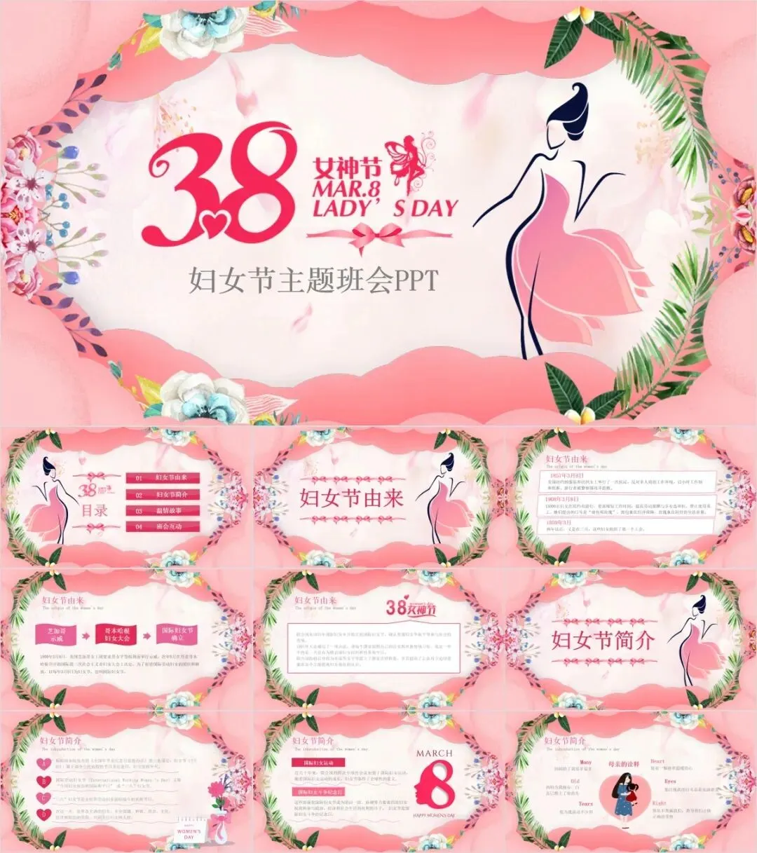 152套三八妇女节主题PPT系列模板(可编辑)【免费保存下载】