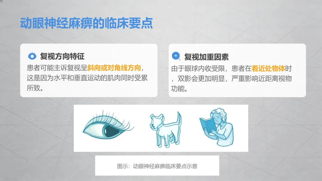 这种重影只有双眼同时看东西时才会出现,单眼单独看完全正常,核心原因是控制眼睛运动的神经或肌肉出了问题,导致双眼没法协同聚焦,重点看重影的方向,不同方向对应不同问题,记好这几种常见情况,轻松初步判断!