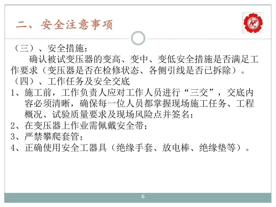2、在变压器上作业需佩戴安全带;