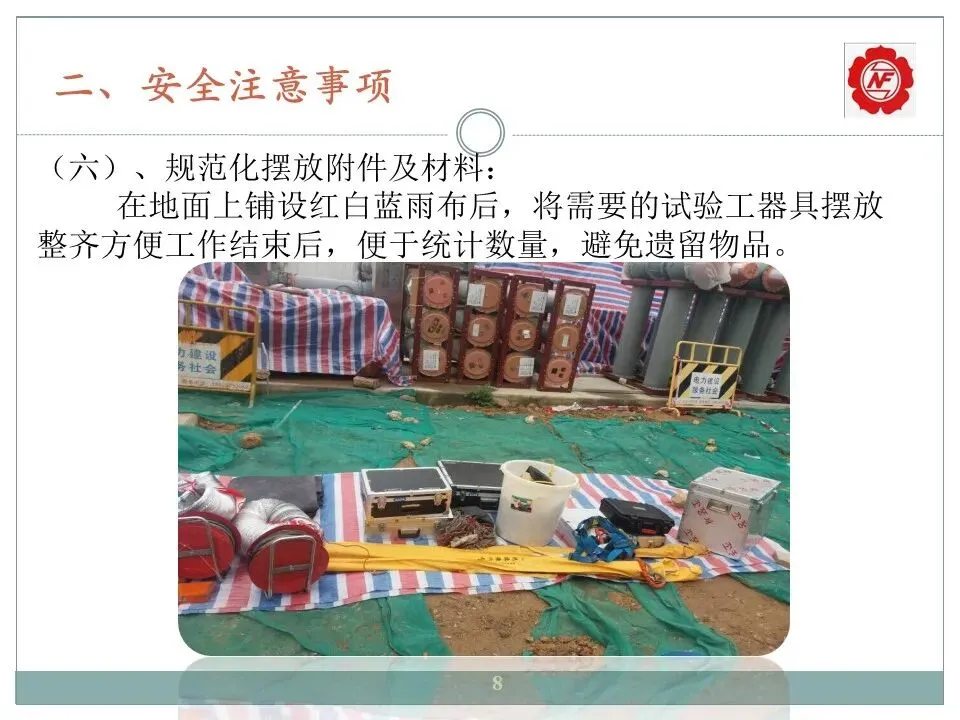 4、正确使用安全工器具(绝缘手套、放电棒、绝缘垫等)。