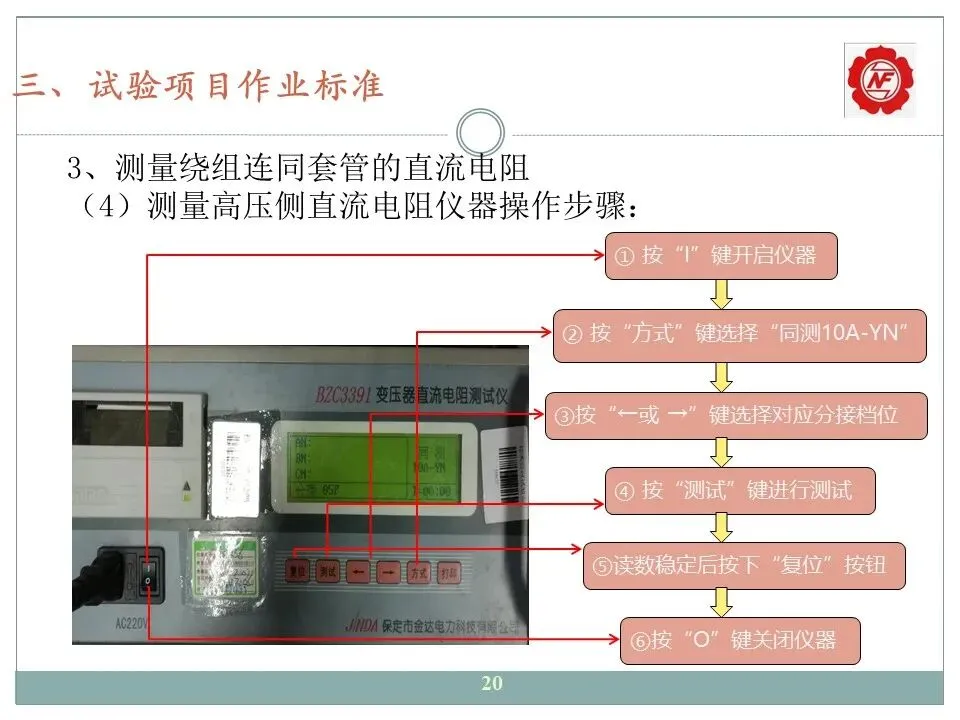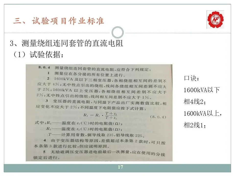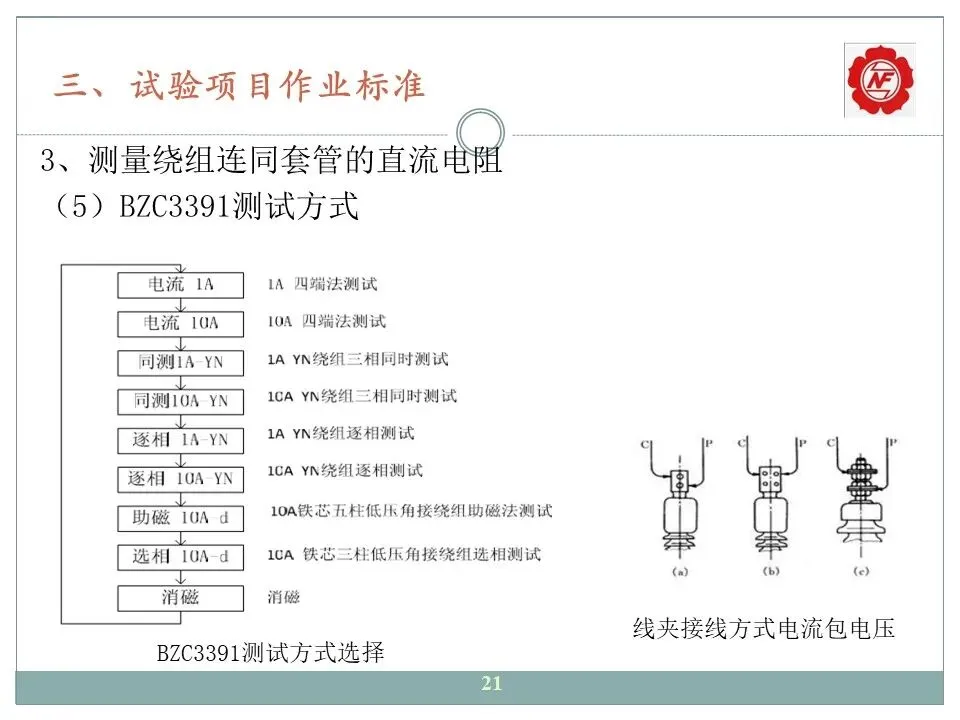 3、测量绕组连同套管的直流电阻;