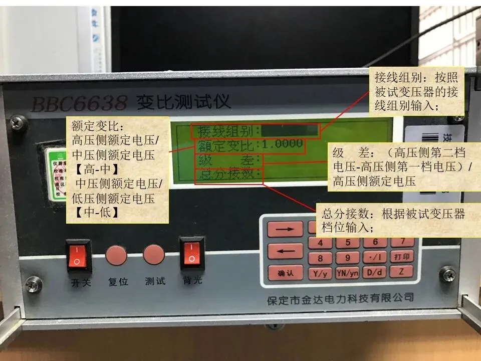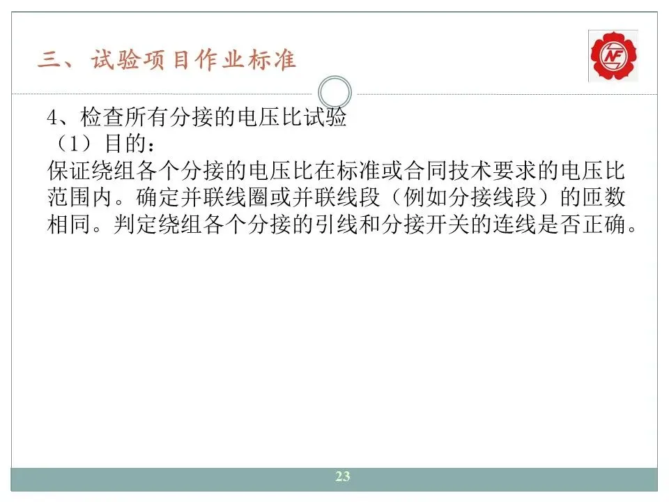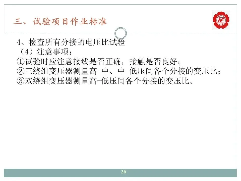 4、检查所有分接的电压比;