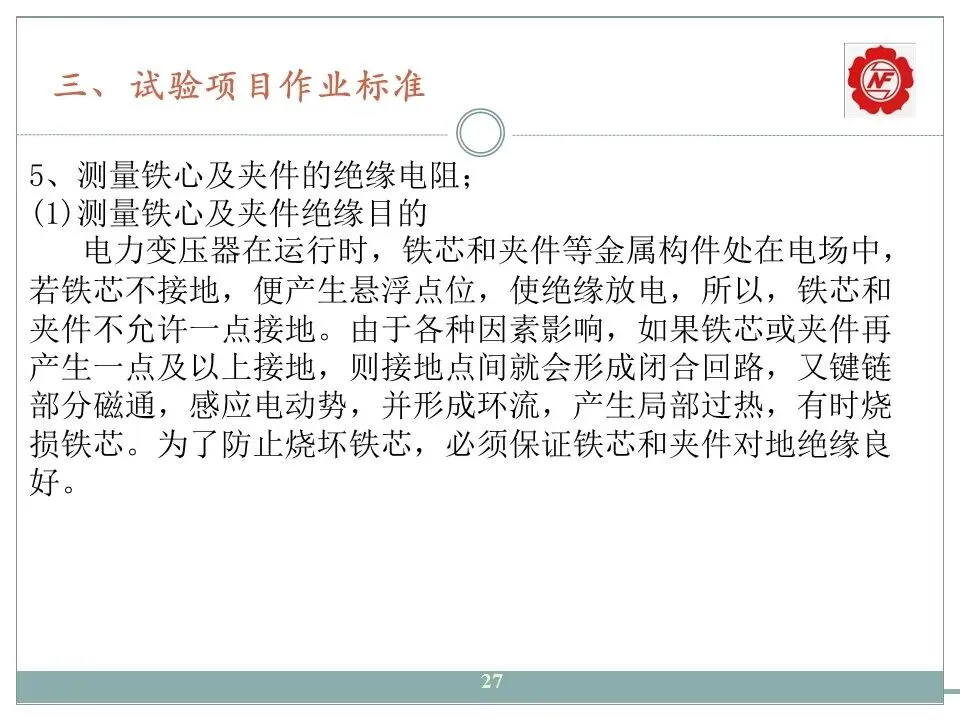 5、测量铁心及夹件的绝缘电阻;