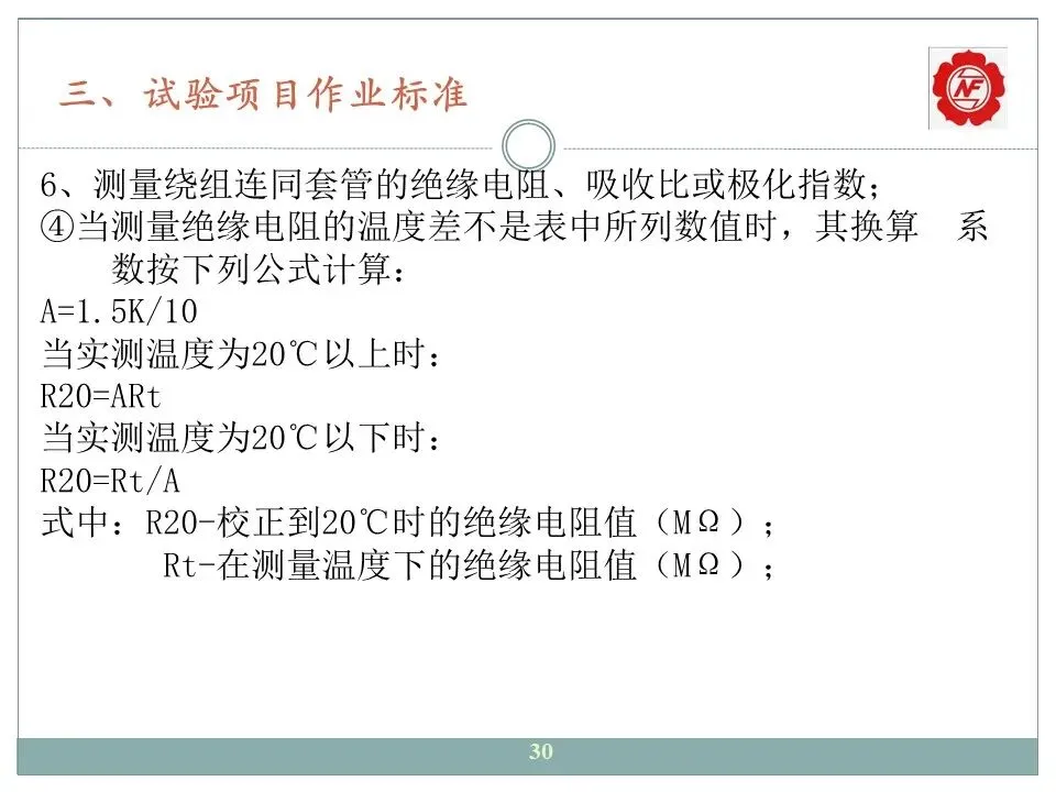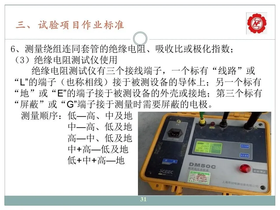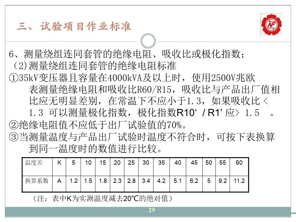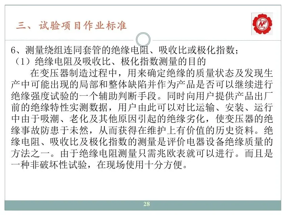 6、测量绕组连同套管的绝缘电阻、吸收比或极化指数;
