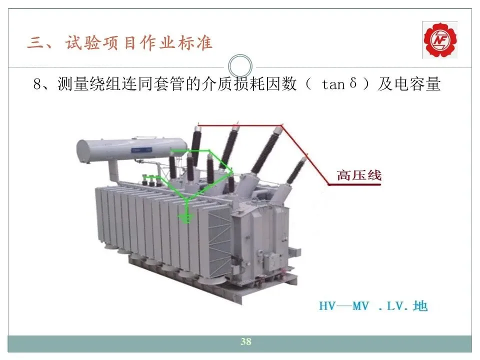 8、测量绕组连同套管的介质损耗因素(tanδ)与电容量;
