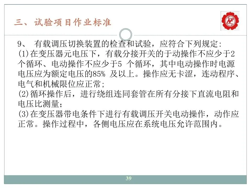 9、有载调压切换装置的检查和试验;
