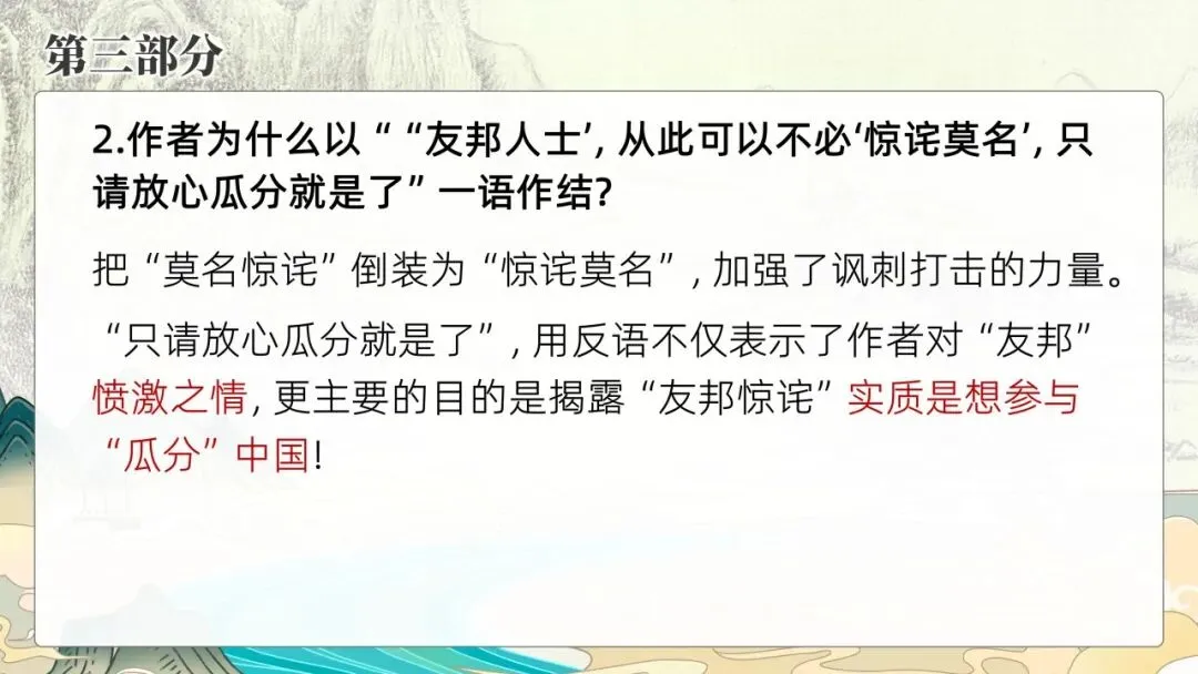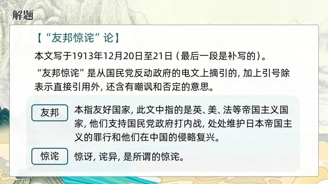 本期更新的课件为统编高教社版中职语文拓展模块上册第一单元《友邦惊诧论》,共26页。