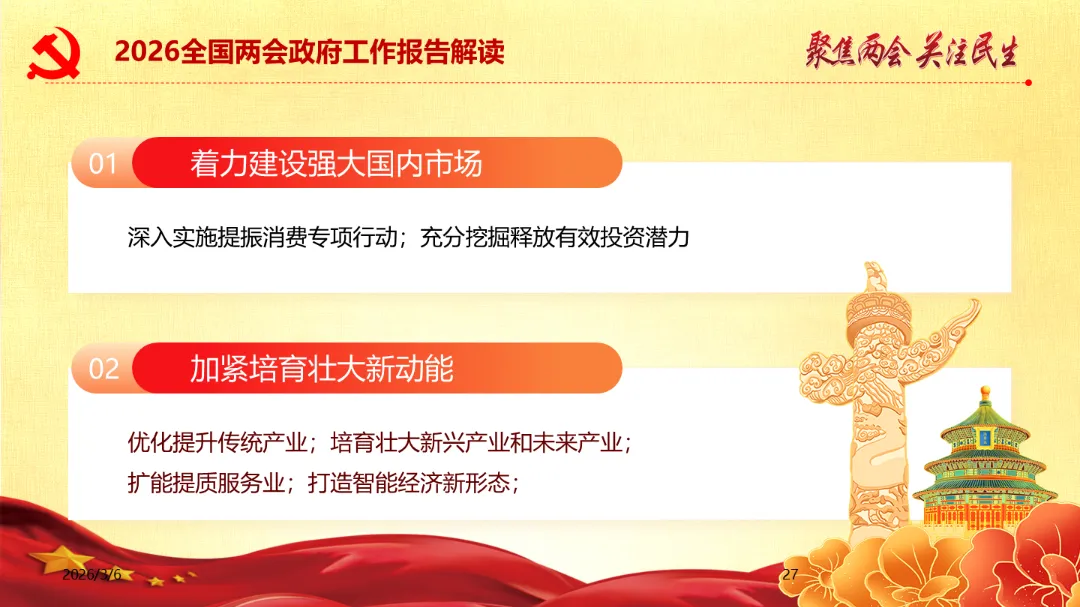 >聚焦两会关注民生专题辅导PPT《数字解读2026年两会政府工作报告》