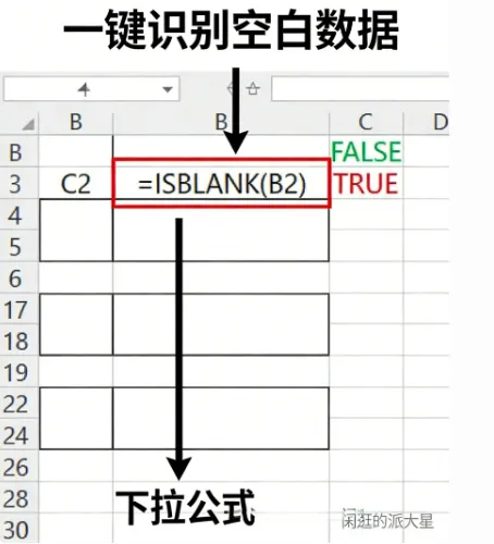 核心公式:=ISBLANK(数据单元格)