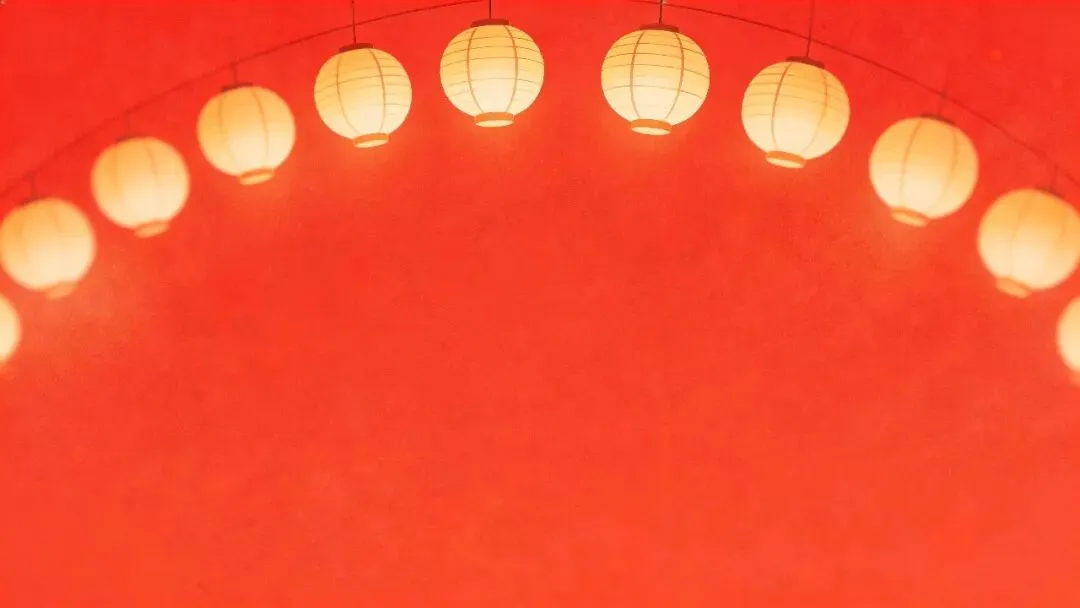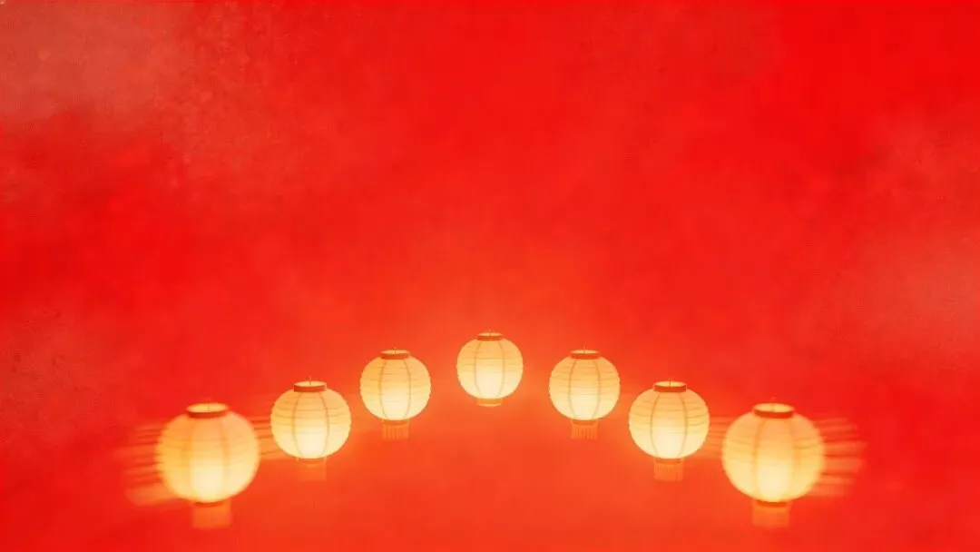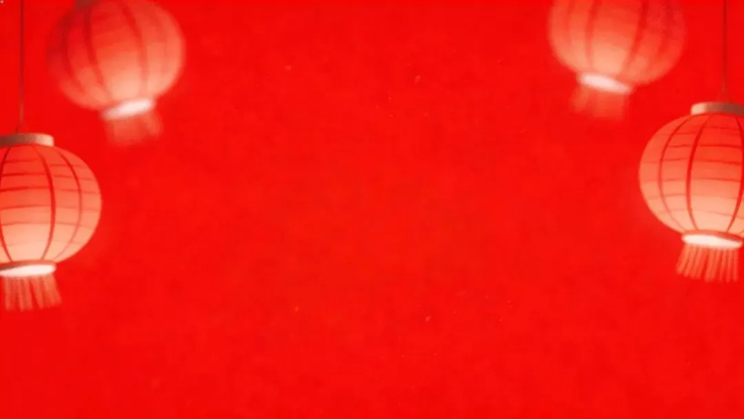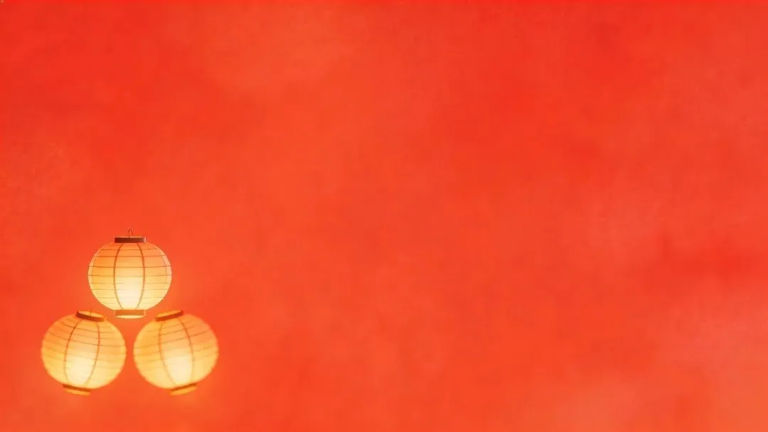 这组新年PPT背景图以暖红渐变背景为基底,搭配暖黄色发光的中式纸灯笼,营造出浓郁的节日氛围感。