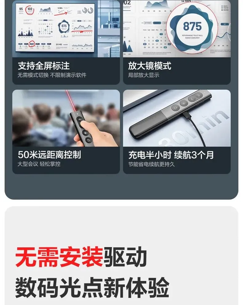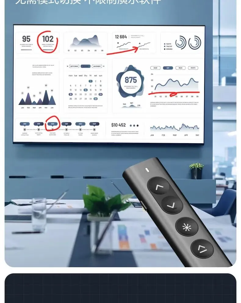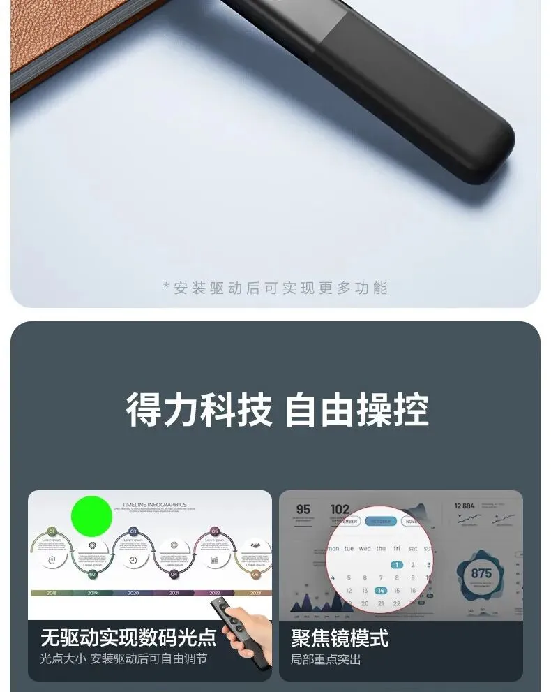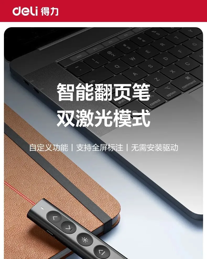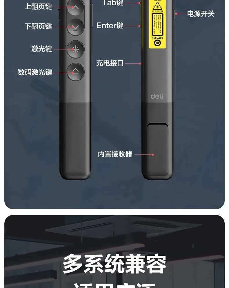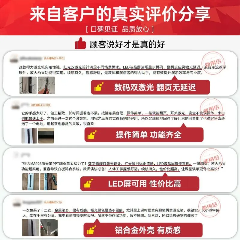 >得力激光笔PPT翻页笔双红光演讲笔教师用MA92 LED液晶屏 USB充电