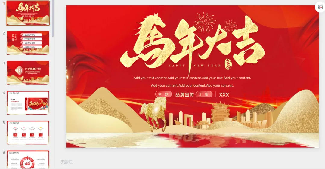 马年开局,职场人最头疼的事来了😭 写马年工作计划已经够费脑,还要花时间做PPT排版——要么模板太普通,体现不出马年氛围;要么排版杂乱,重点不突出,汇报时得不到领导认可,白白浪费精力。
