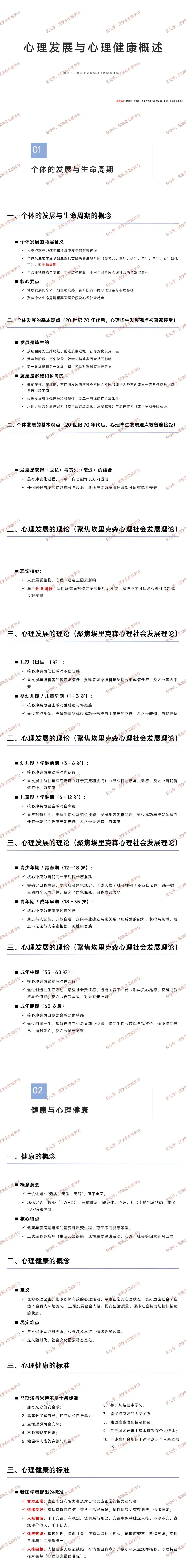 - 核心要点:健康发展需契合各阶段心理任务与特征,受生物、心理、社会多因素影响。