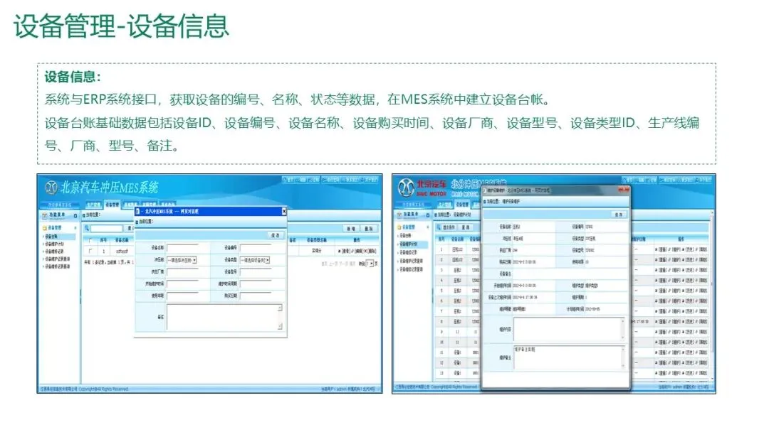 设备台账:与ERP接口同步建立设备档案,记录设备ID、型号、购买时间等信息。