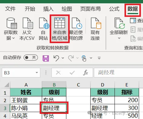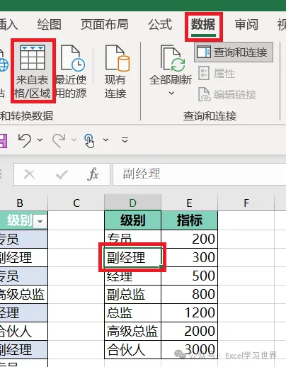 1. 选中左侧数据表的任意单元格 --> 选择工具栏的“数据”-->“来自表格/区域”
