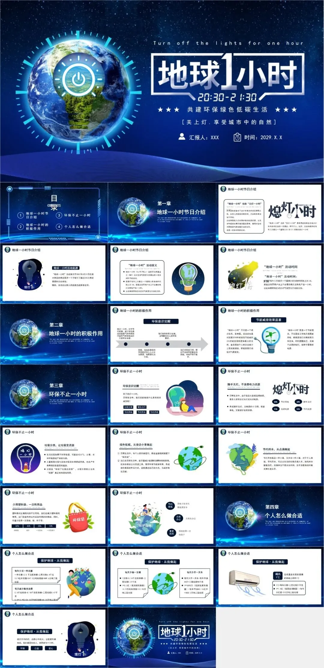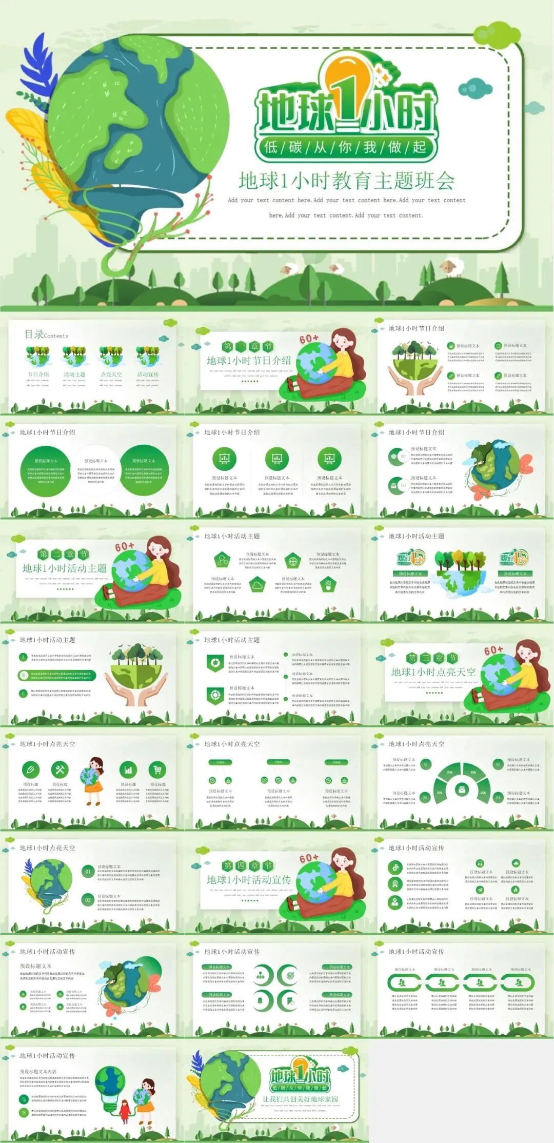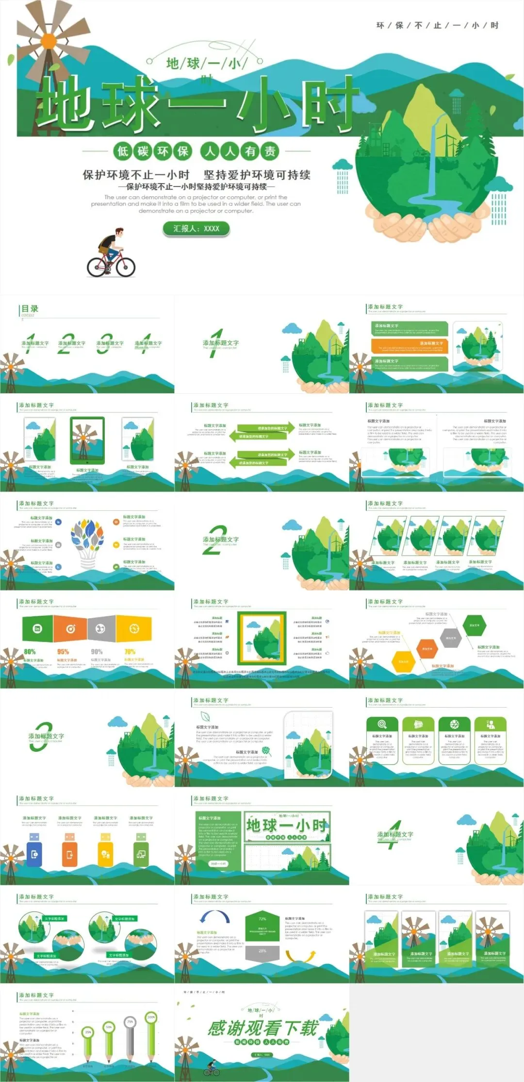 今天直接给大家整理好 ——地球一小时 PPT 模板大合集