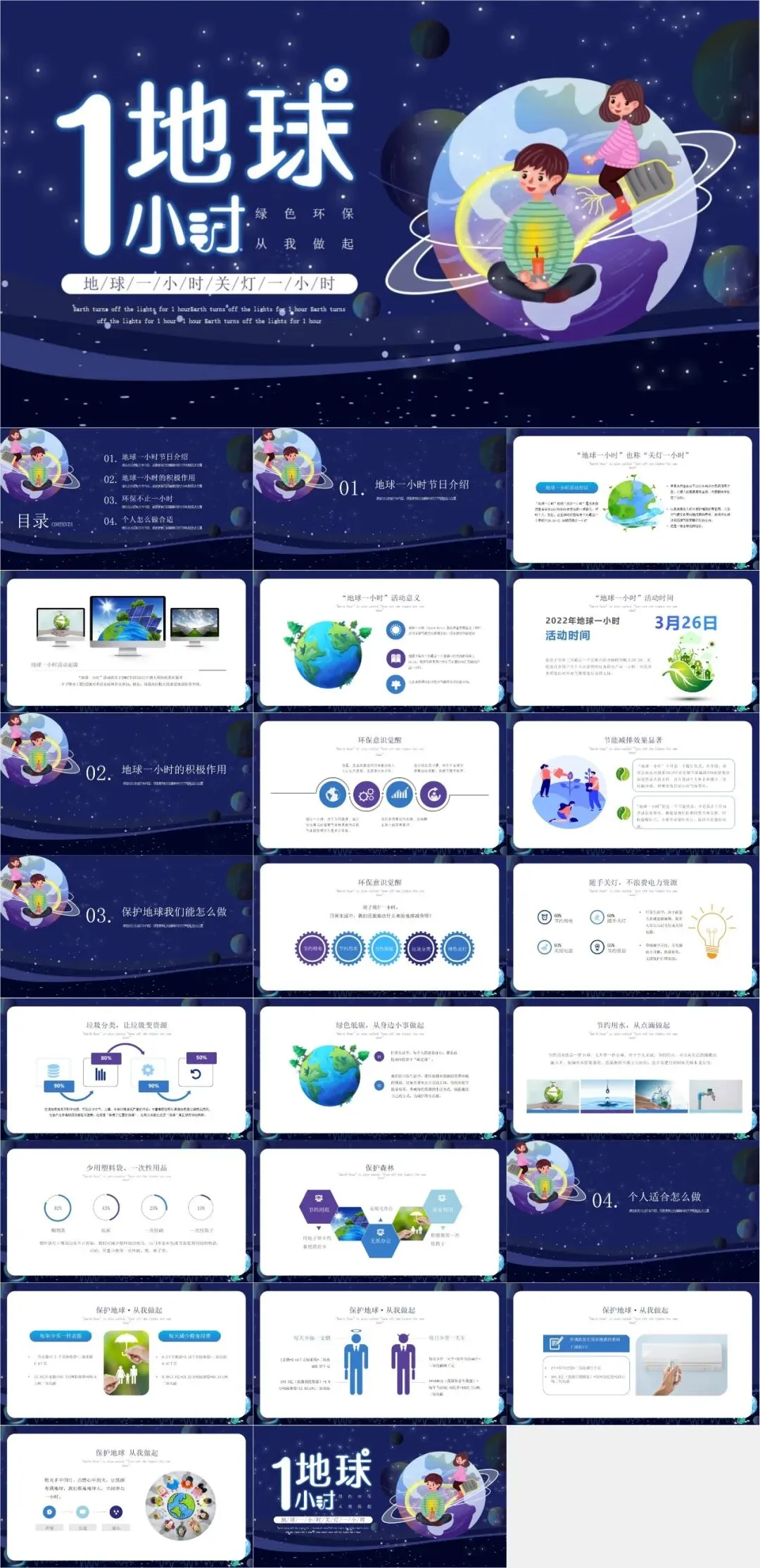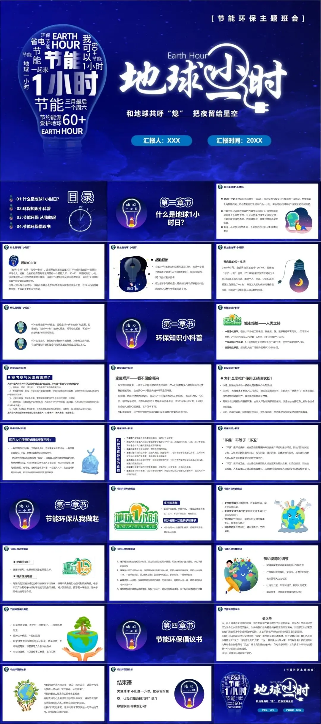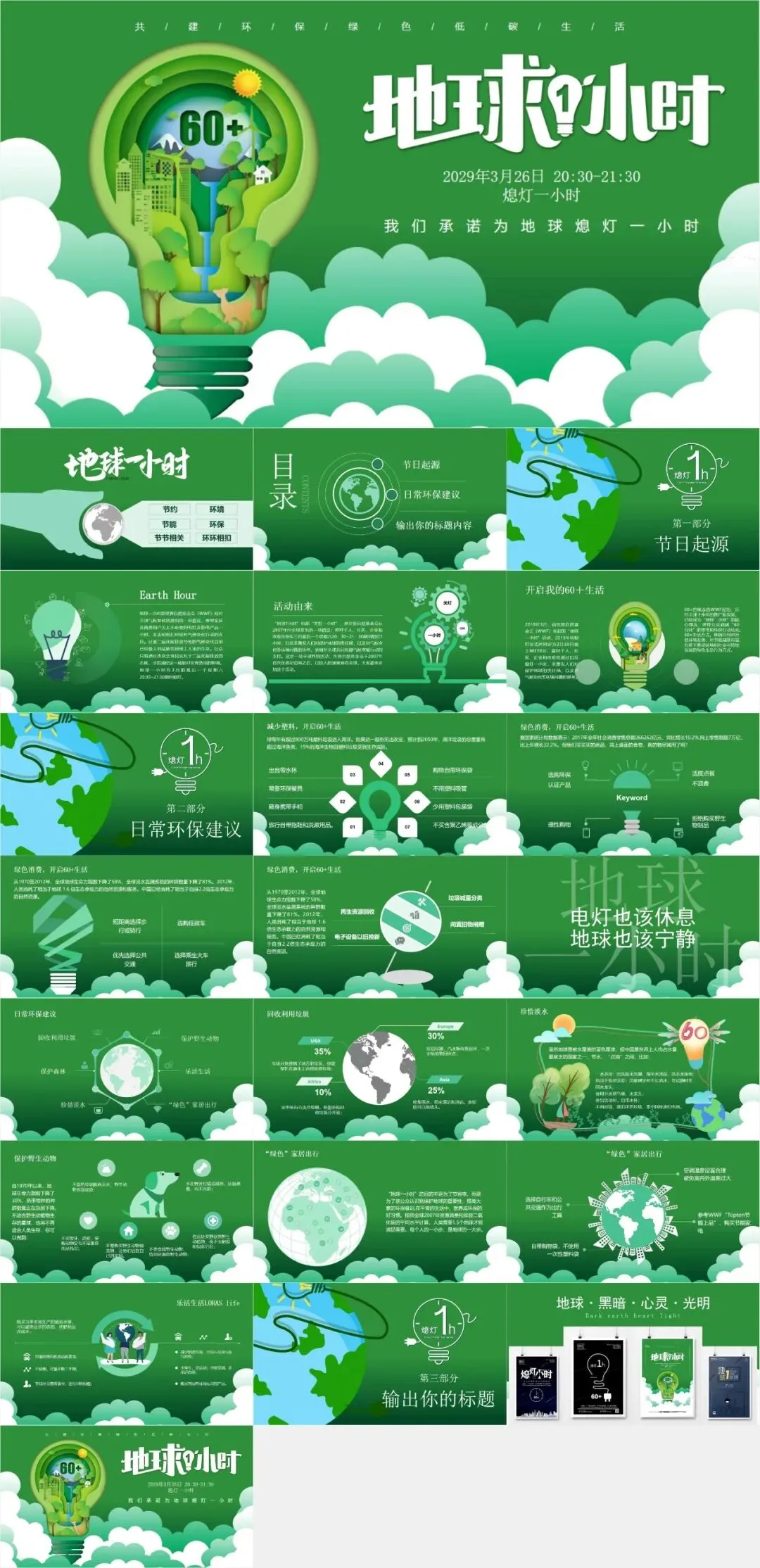 今天直接给大家整理好 ——地球一小时 PPT 模板大合集