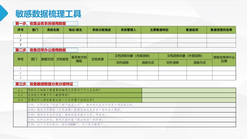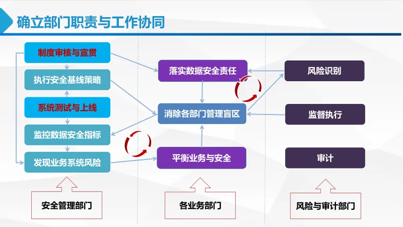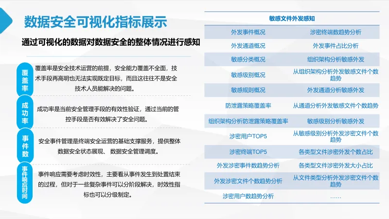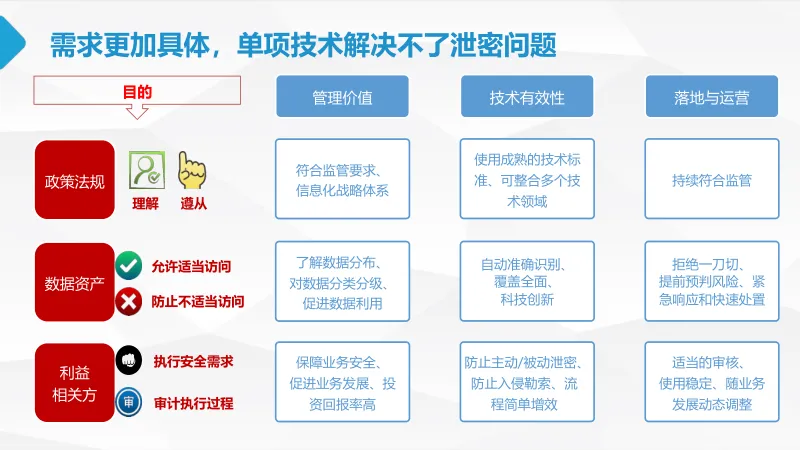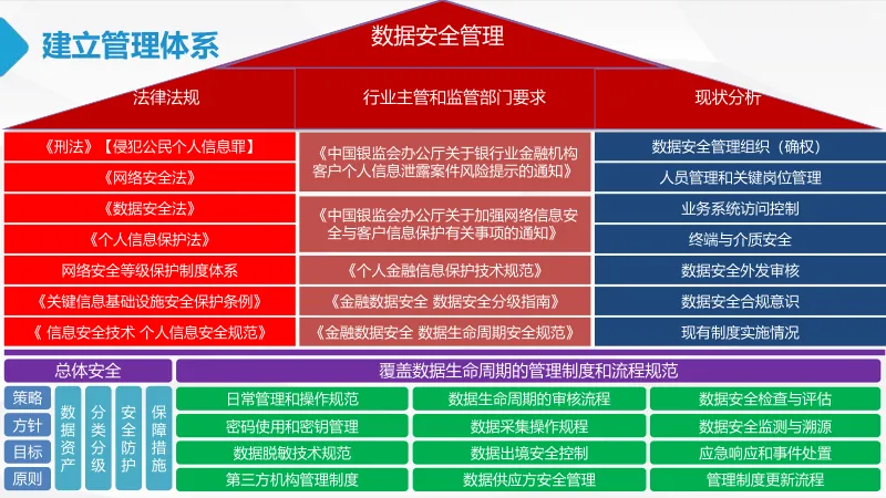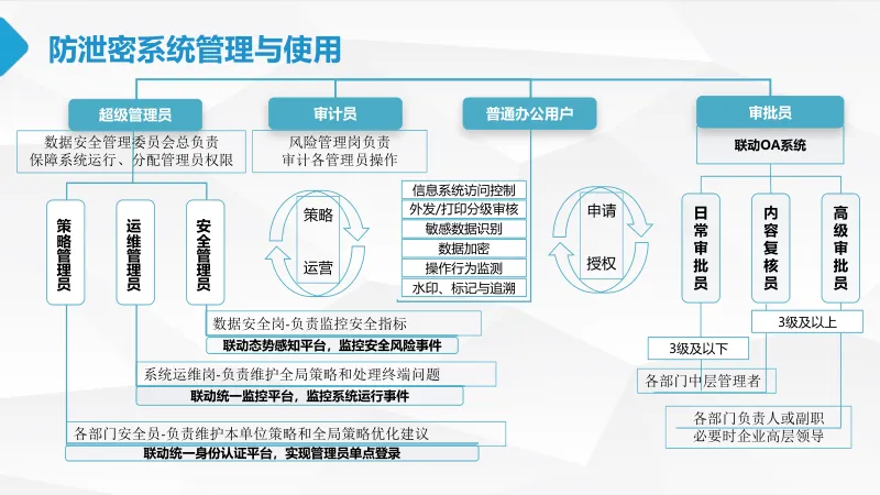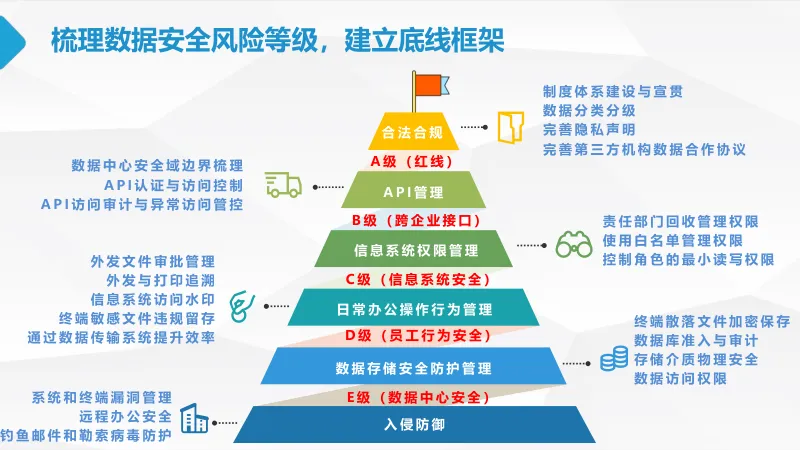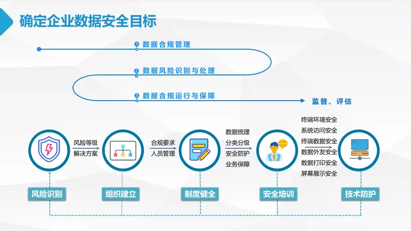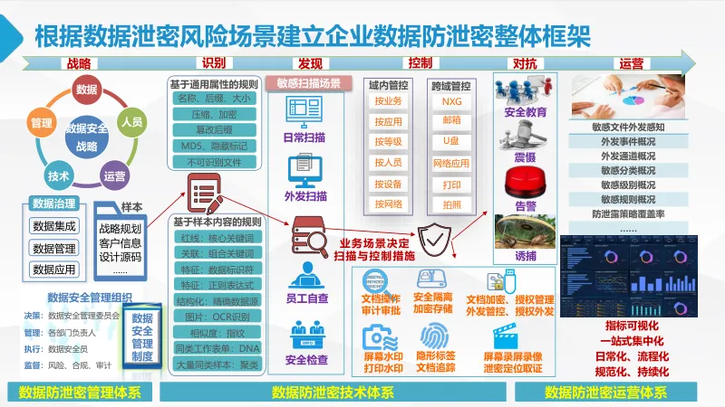 - 三、搭建三重体系,实现全流程管控建立技术体系,整合 DLP、数据加密、零信任、UEBA 等技术,覆盖识别、发现、控制、对抗全环节;搭建管理体系,明确数据安全管理委员会、各部门安全员等职责,完善制度与审批流程;落地运营体系,实现指标可视化、审计日常化,及时响应安全事件。
