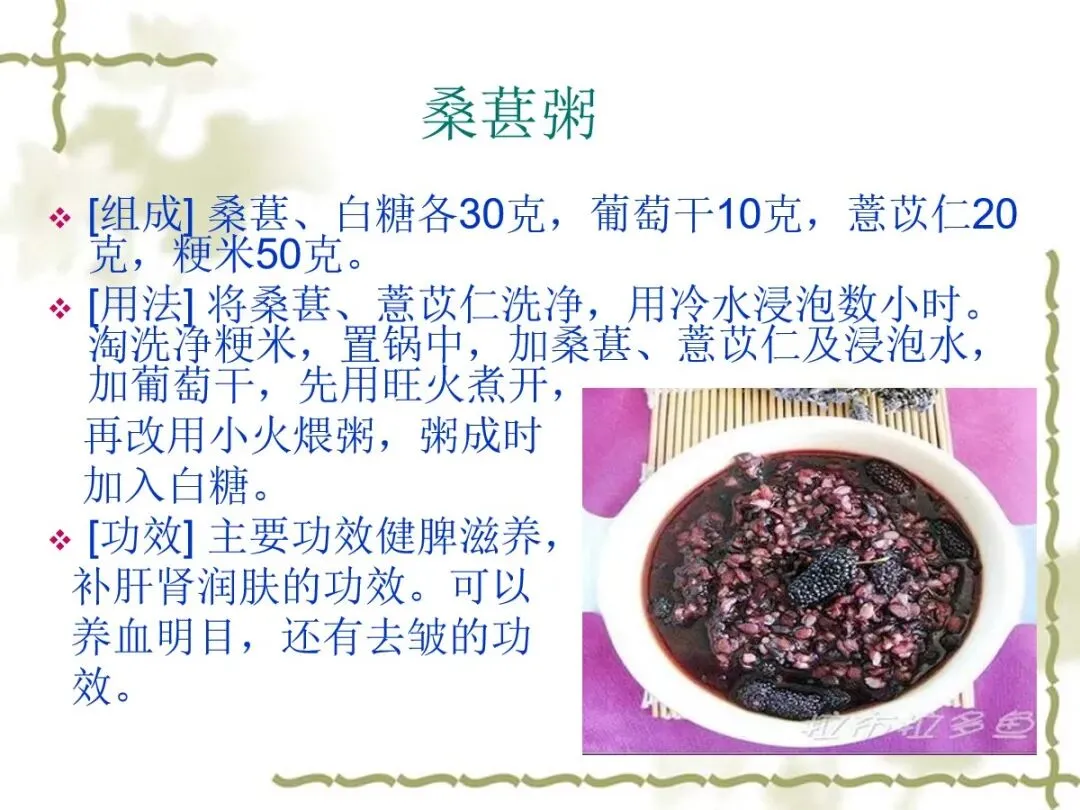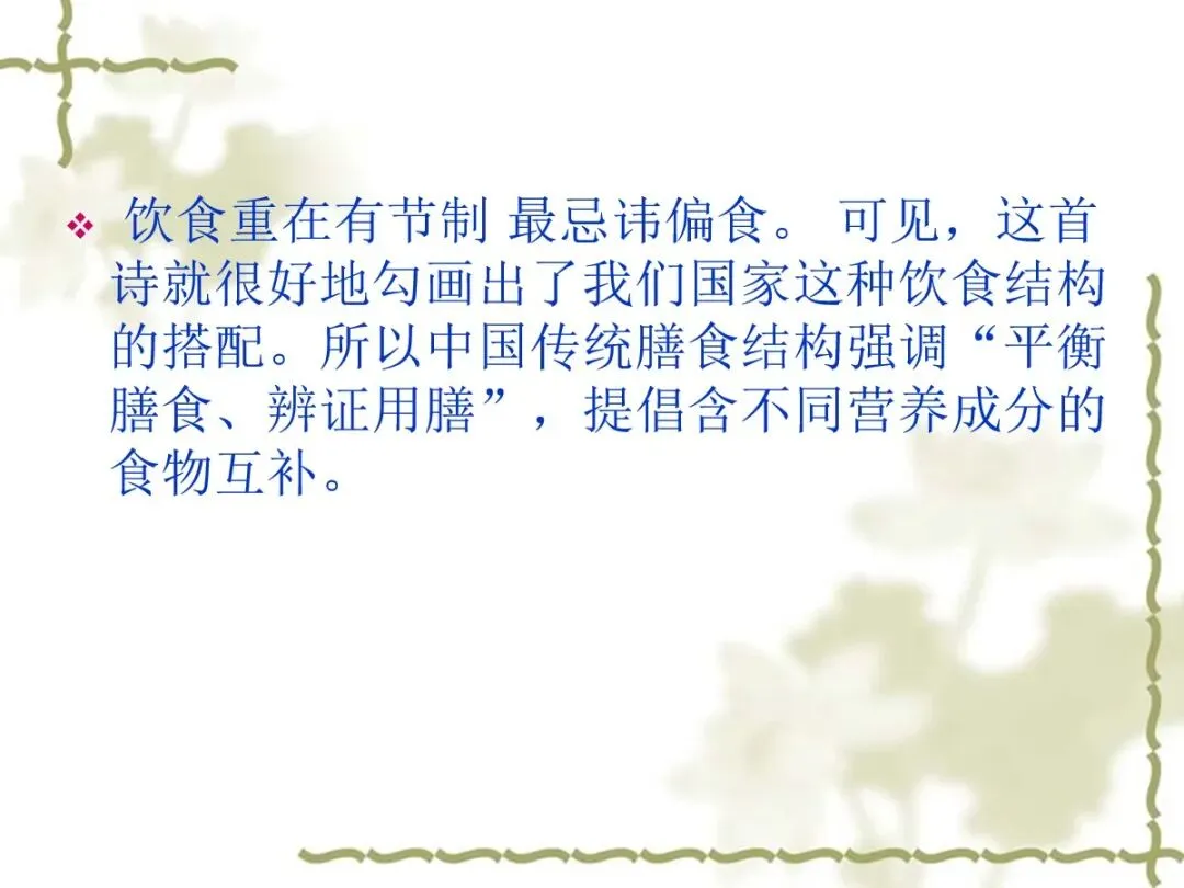 食养是根据不同的年龄、性别和体质、以及气候、地理等环境因素的差异,选择适宜的饮食以调节人体功能、滋养气血津液、强身健体、预防疾病的一种方法。
