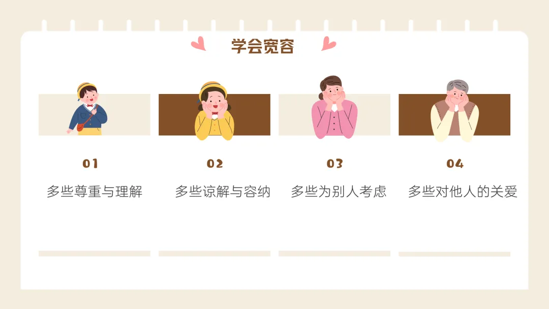 再融入六尺巷、负荆请罪经典故事小剧场,图文搭配好讲解,让宽容教育有实例可依;还有自身故事分享环节,引导学生自我反省,实现从认知到实践的过渡;