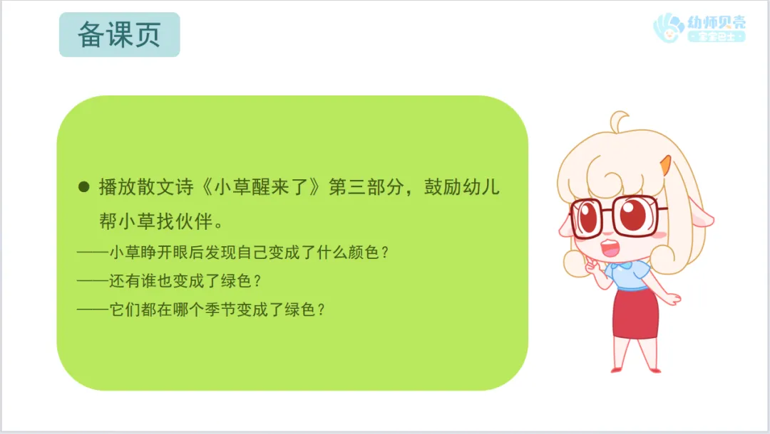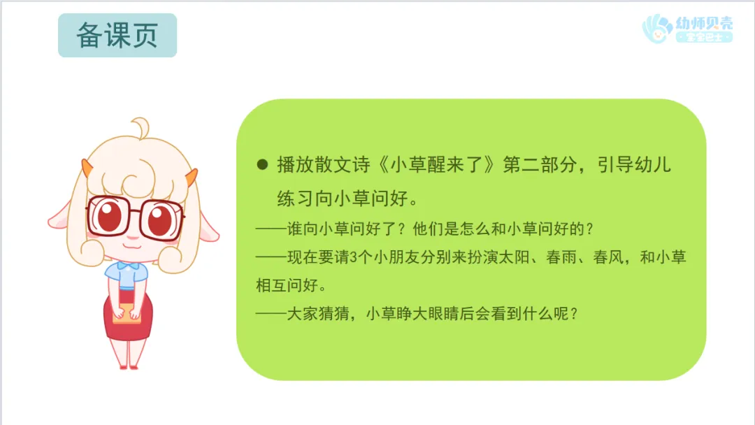 >幼儿园小班语言&社会——《小草醒来了》PPT+教案分享