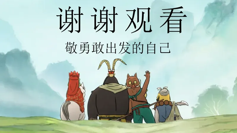 谢谢观看!敬勇敢出发的自己。同学们,新学期的旅程已经开启,让我们带着电影中的勇气与智慧,勇敢地面对每一个挑战,书写属于自己的英雄之旅。记住,无论遇到什么困难,都不要放弃,因为,你比想象中更加坚强!加油!