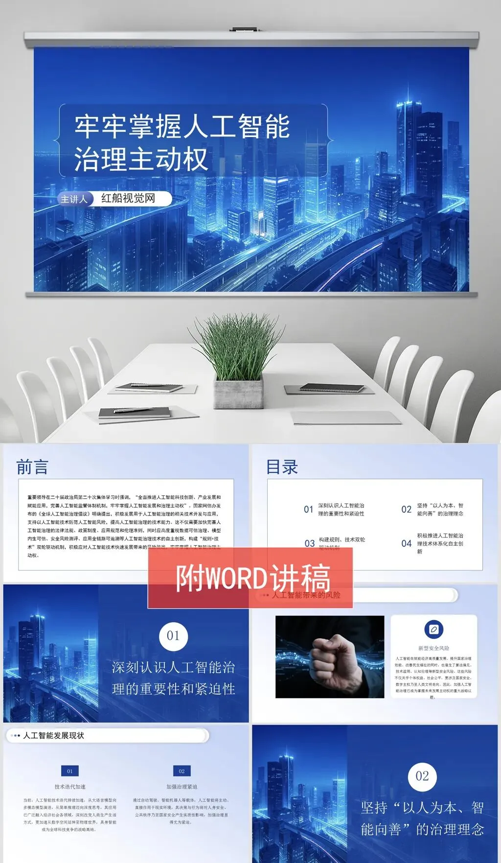 本课件主要内容为牢牢掌握人工智能治理主动权PPT课件,讲稿字数:2337字。