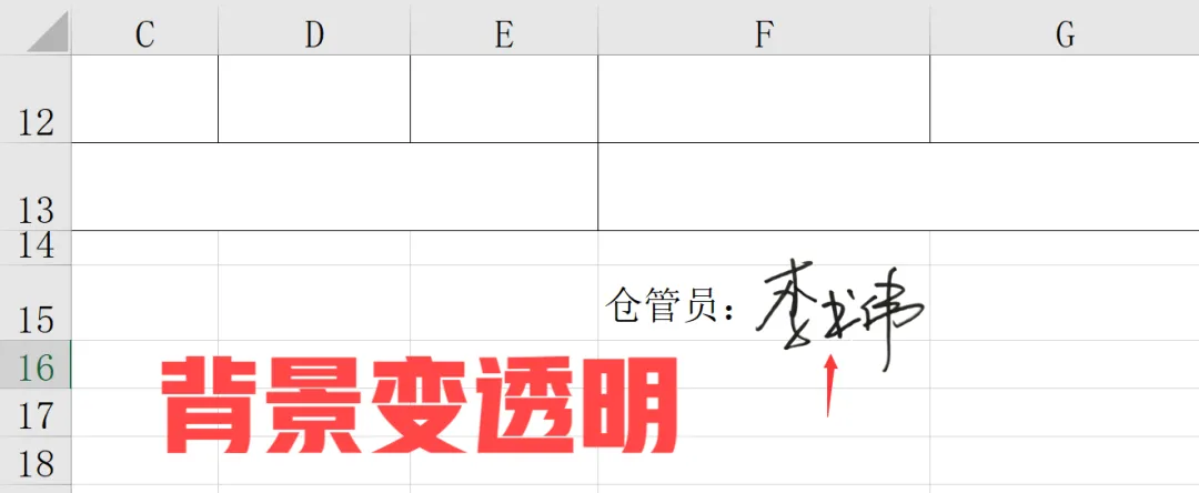 然而,此时的电子签名图片背景仍为纯白色,可能会遮盖签名下方的内容,影响表格整体美观。