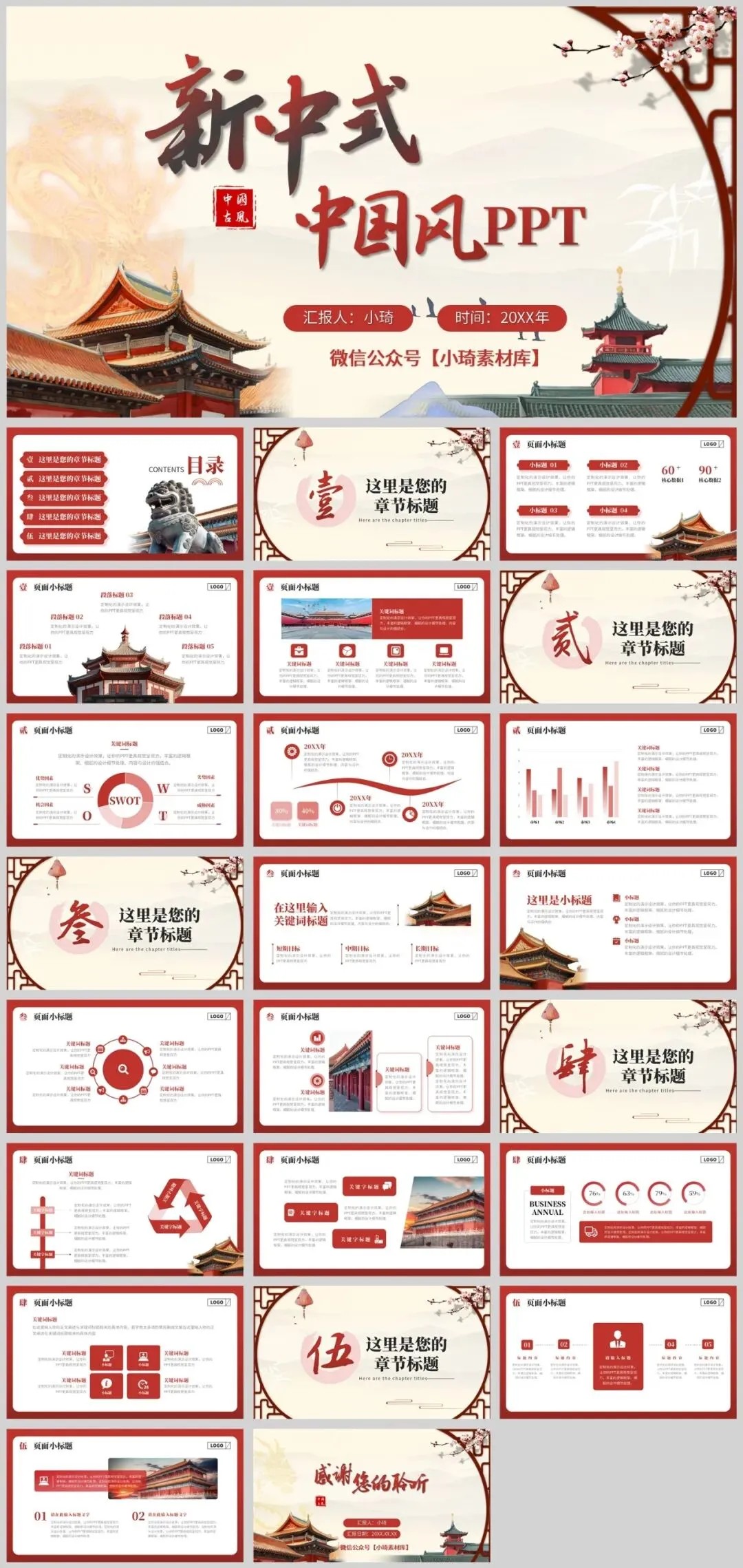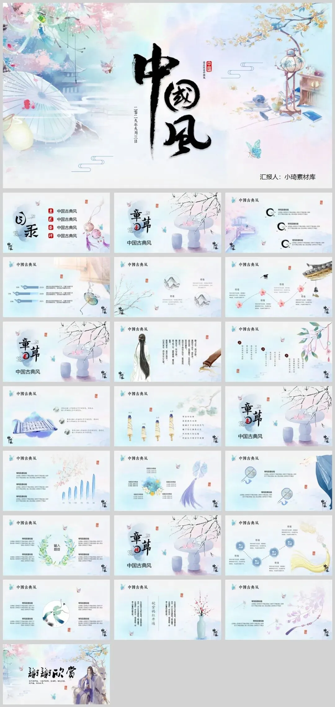 之前小琦给大家上过好几期中国风新中式PPT模板