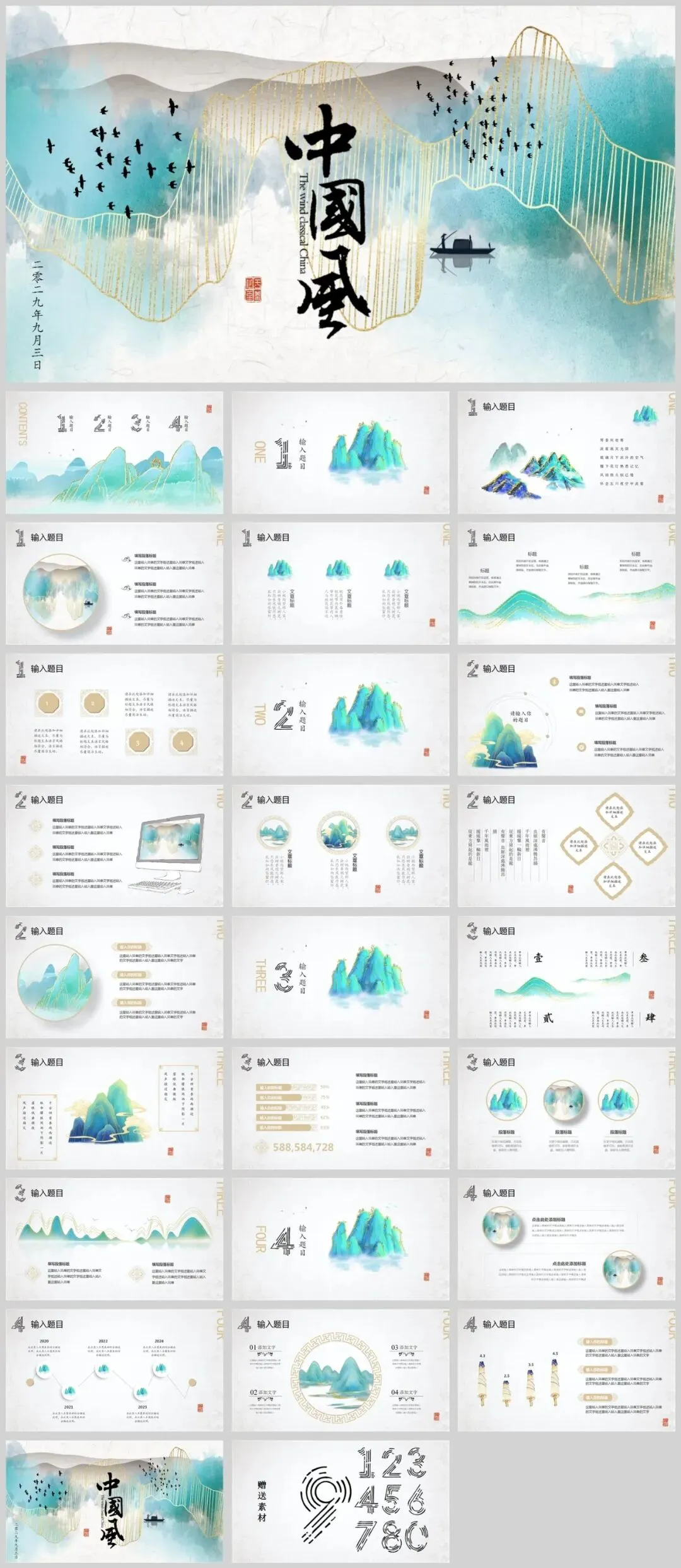 消失的审美又回来了!26套绝美国潮山水PPT模板!【1204期】