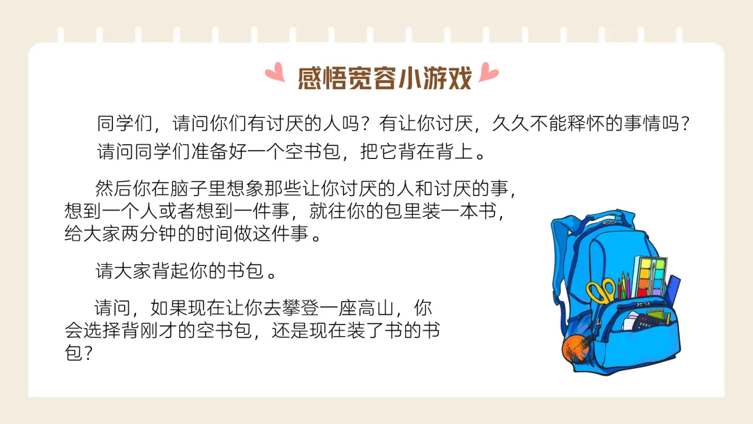 (1)同学们,请问你们有讨厌的人吗?有让你讨厌,久久不能释怀的事情吗?