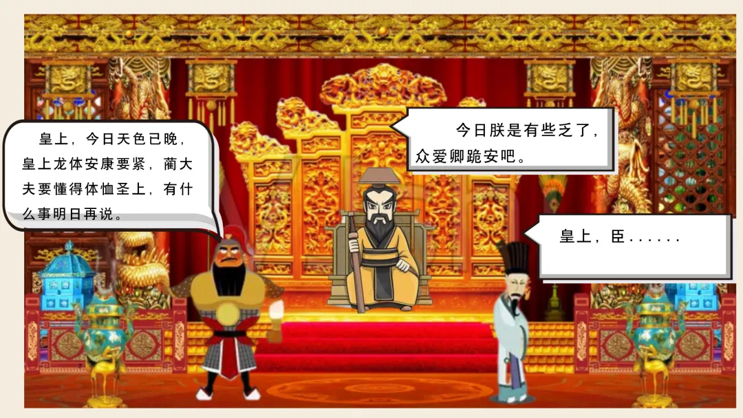 (可提前让学生排练好节目:人物①蔺相如②廉颇③士大夫×2④皇上)