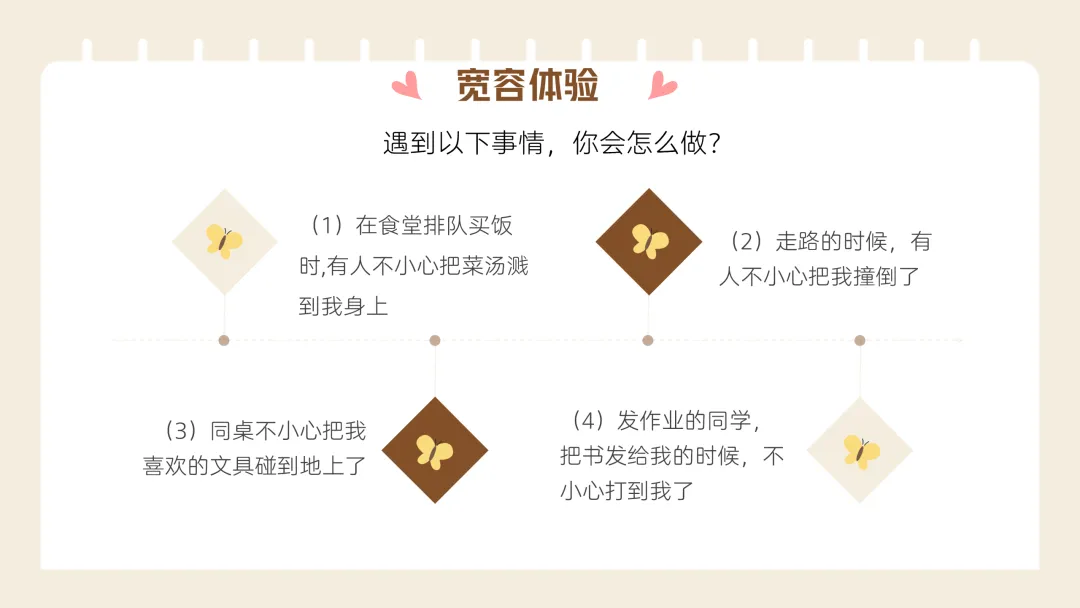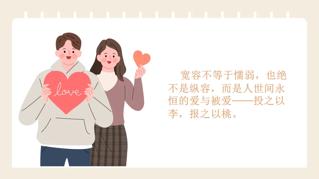 很高兴在这与您相遇,如果您是一位班主任老师,每天除了应对繁重的教学工作,还要加班整理班级、教务、教研、课件PPT资料,请关注下方的“春雨教务资料”,让我们风雨同路、一起成长~今天分享的是初高中通用感恩教育宽容教育主题班会的ppt课件和配套的发言稿,主题是《严于律己,宽以待人》“严于律己,宽以待人”