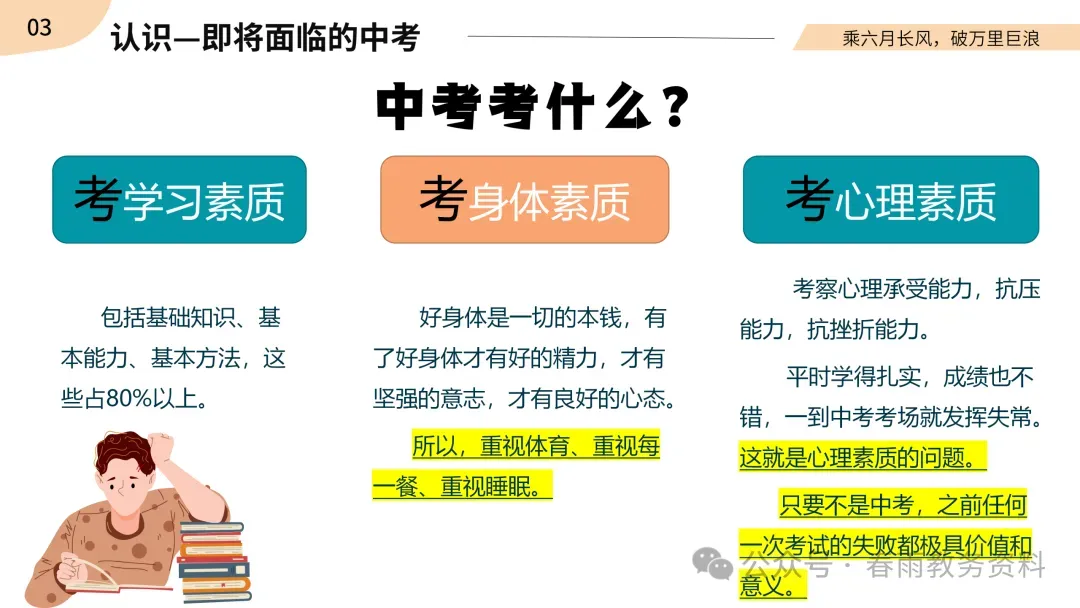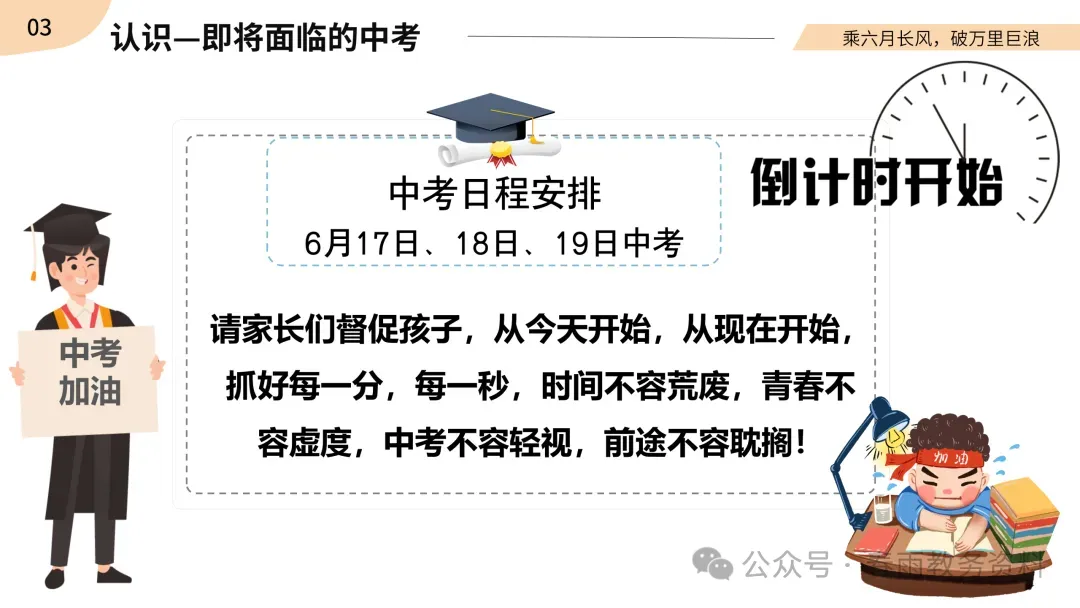 孩子的成长是你我一生的事业!中考是一场比知识、比能力、比心理、比信心、比体力的综合考试。