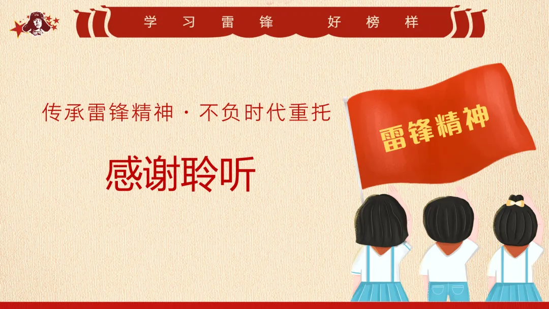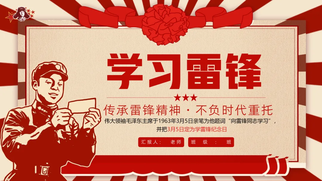 今天,我们班会的主题是"学习雷锋——传承雷锋精神,不负时代重托"。