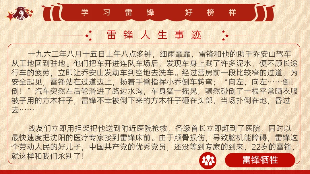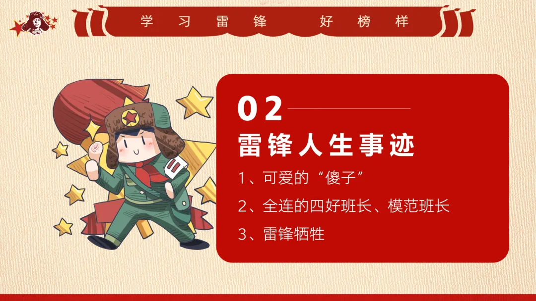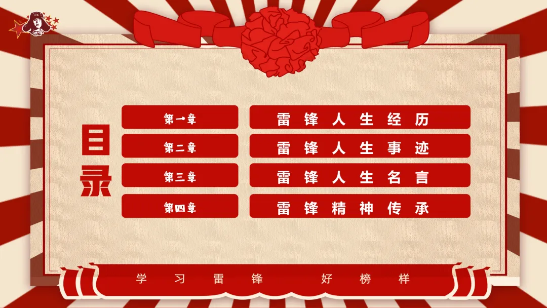 接下来,让我们通过几个感人的故事,来具体了解雷锋同志的人生事迹。我们将从三个方面来讲述: