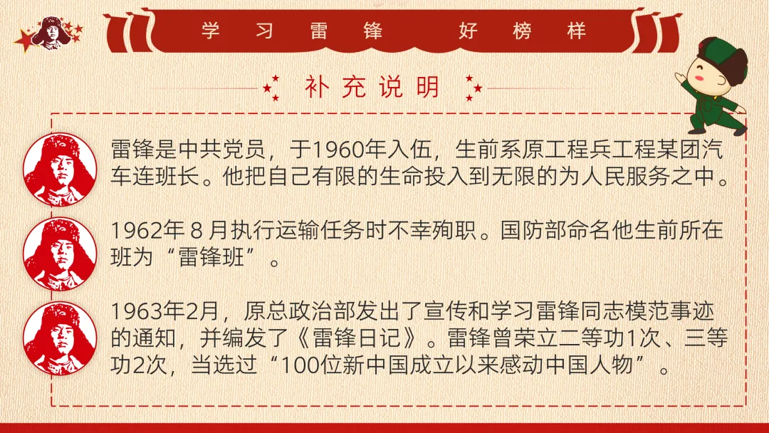 很高兴在这与您相遇,如果您是一位班主任老师,每天除了应对繁重的教学工作,还要加班整理班级、教务、教研、课件PPT资料,请关注下方的“春雨教务资料”,让我们风雨同路、一起成长~今天分享的是2026年通用学习雷锋主题班会的ppt课件和配套的发言稿,主题是《传承雷锋精神,不负时代重托》(文末有课件资料的获取方式)