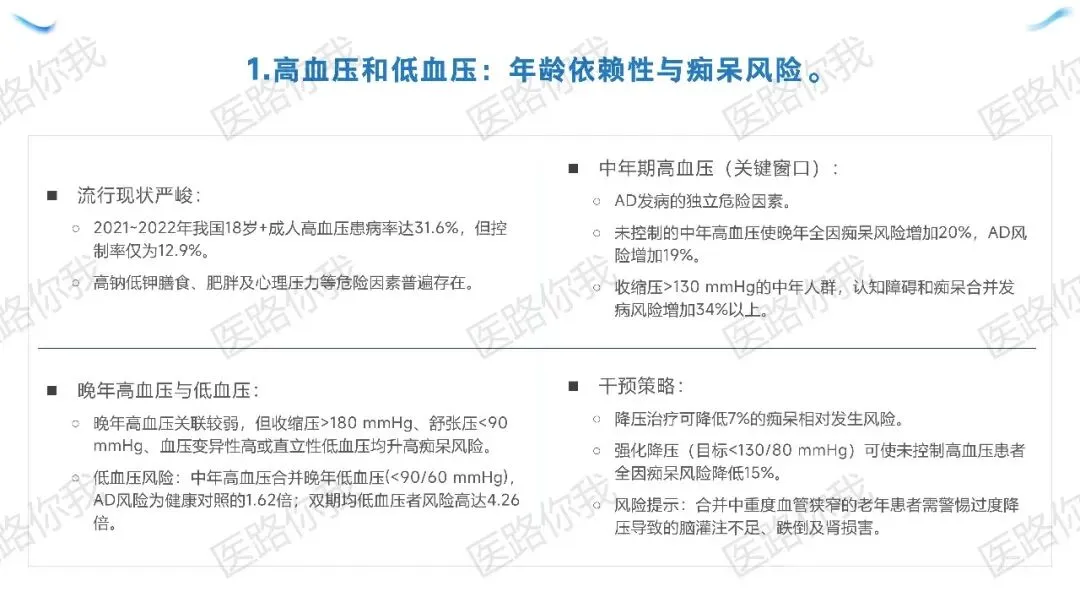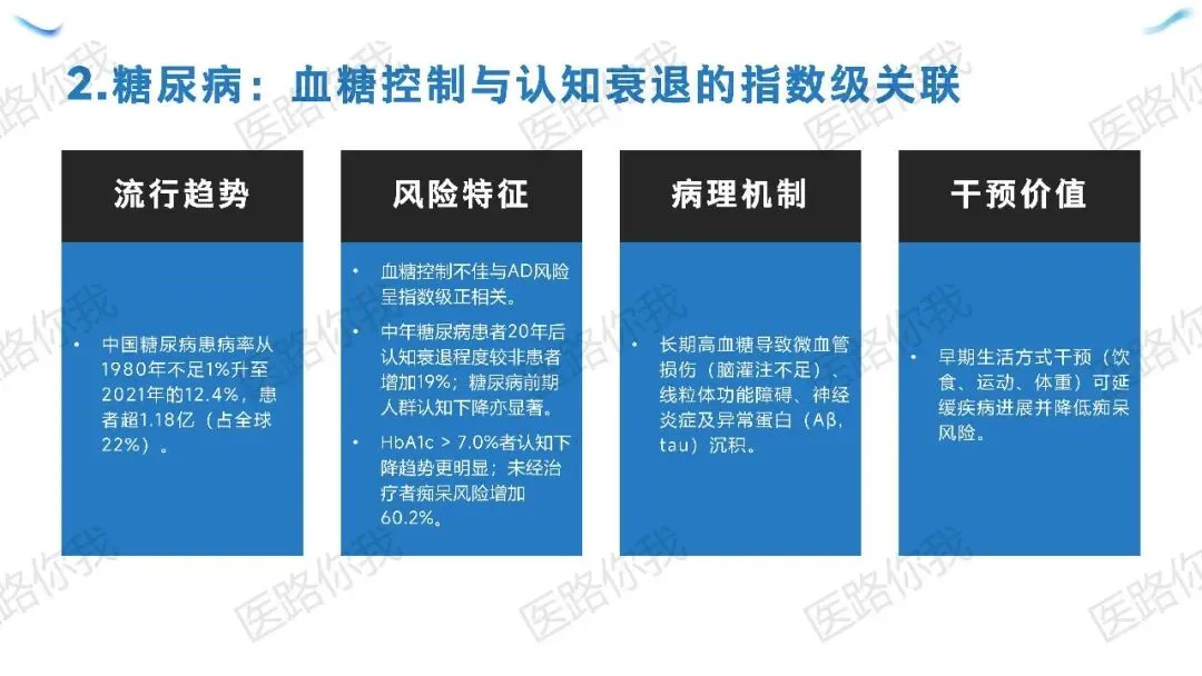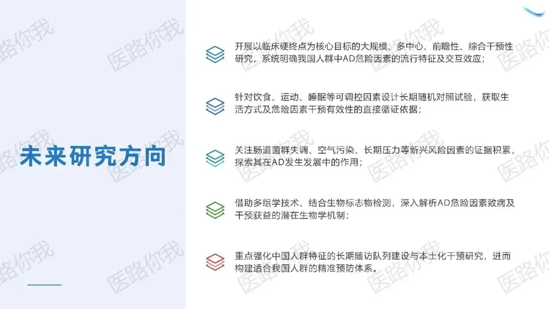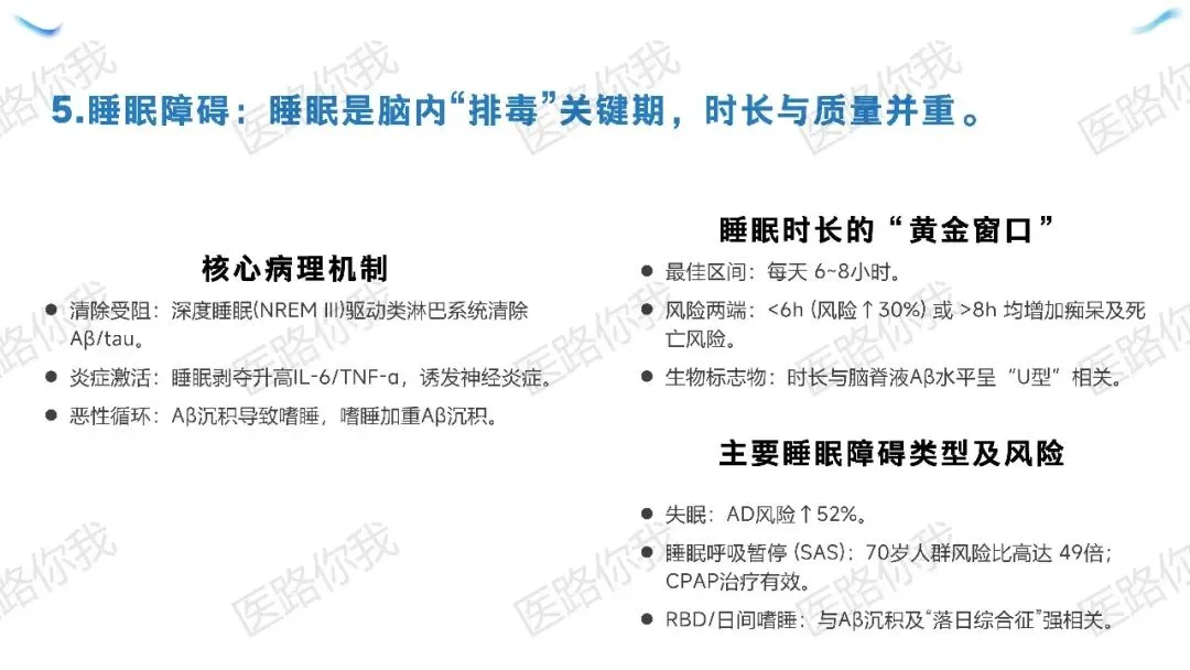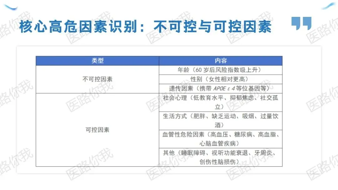 核心策略:针对有AD家族史或血管风险的人群,同步实施“五维协同”(饮食优化、规律运动、睡眠管理、认知训练、血管风控)。