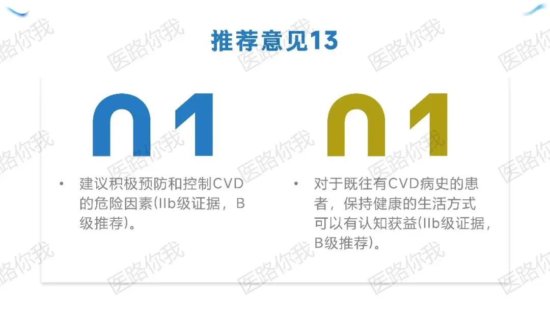 策略:管理CVD危险因素即是在预防AD,即使已患病,健康生活方式仍有获益。