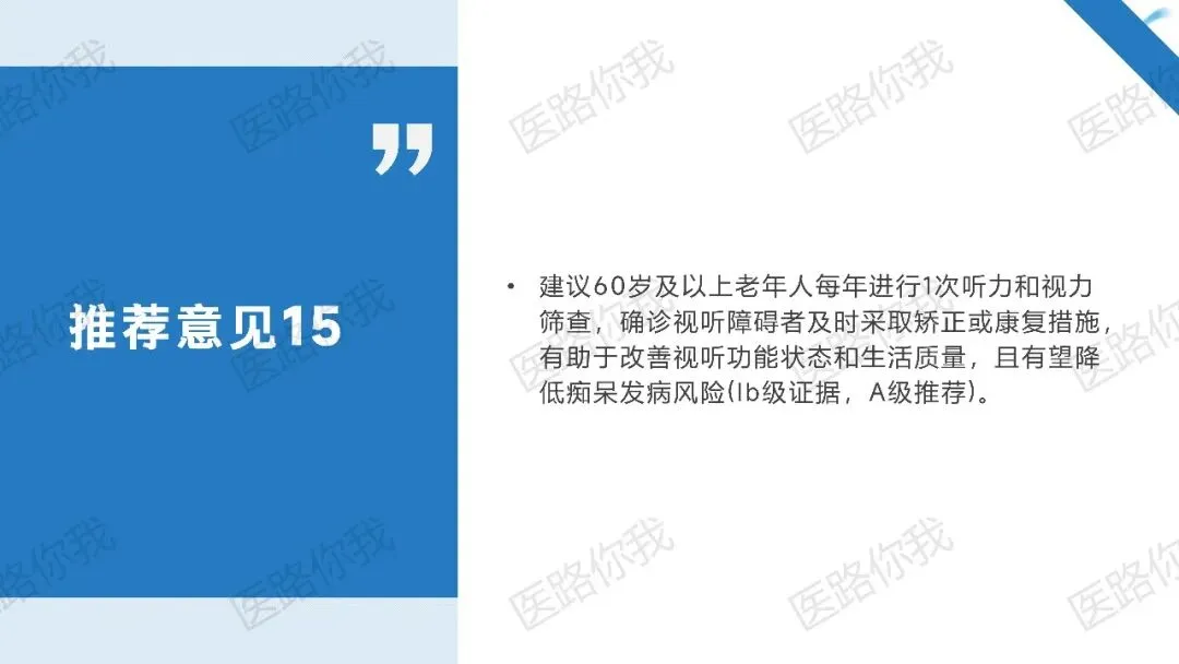 >65岁:聚焦抑郁管理、感官矫正、防少肌症及多重用药审查。
